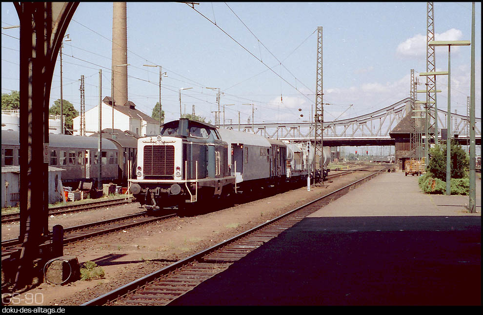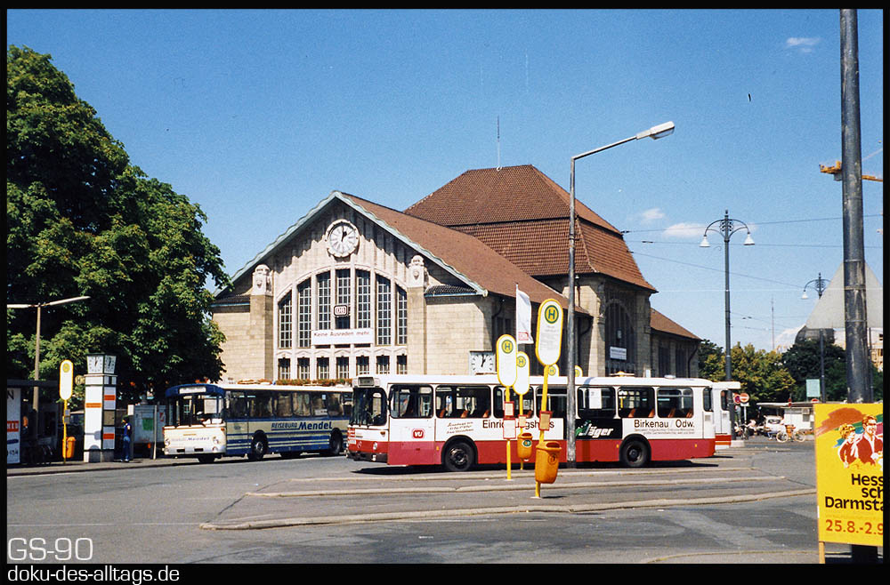 | 1.) Das Bahnhofsgebäude und der Vorplatz mit Busbahnhof im Sommer 1990. | |||||