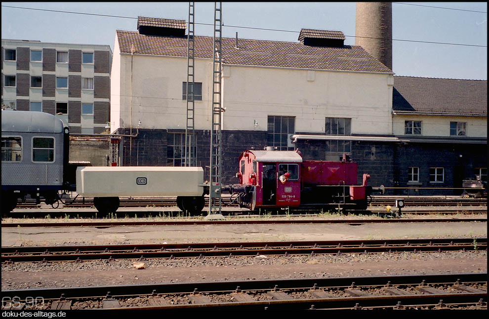 | 1.) 323 794 ist an der Waggonwaschanlage beschäftigt. Zu sehen ist auch ein Zwischenwagen, damit das Personal nicht naß wird. | |||