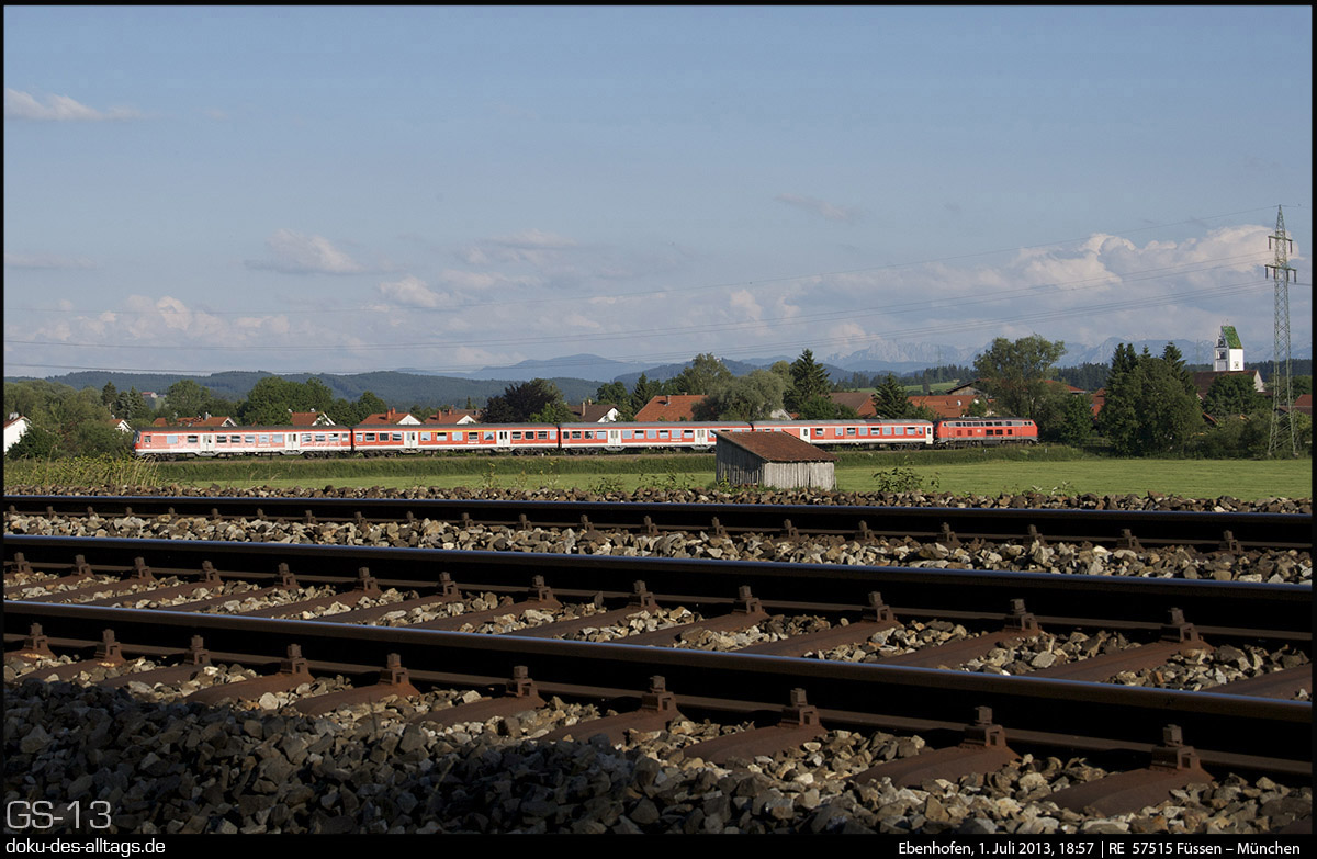| 7.) Kurz darauf der Gegenzug. RE 57514 und RE 57515 kreuzten sich in Biessenhofen. | |||