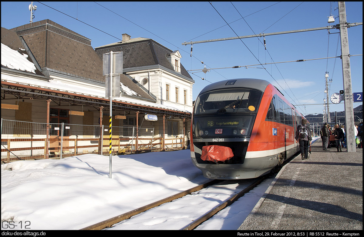 | 5.) Sieben Jahre später sind die Vorserien 627 und 628 längst durch die Baureihe 642 abgelöst. 642 093 fährt in Kürze zurück nach Kempten. | ||||||||