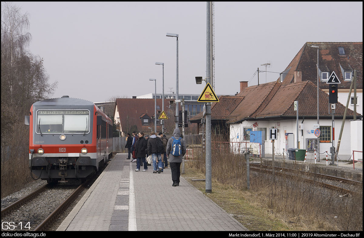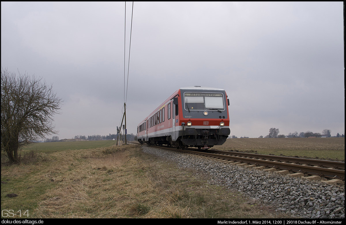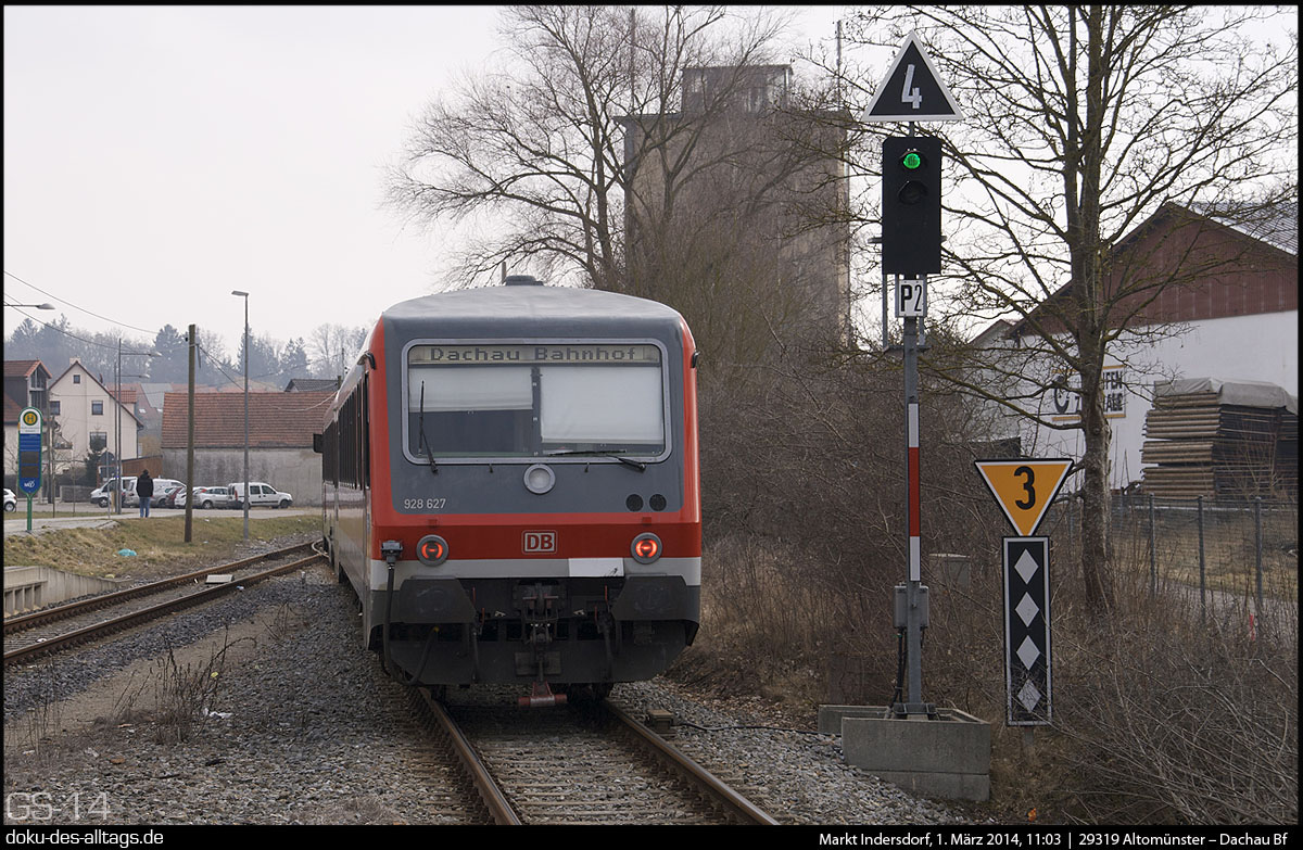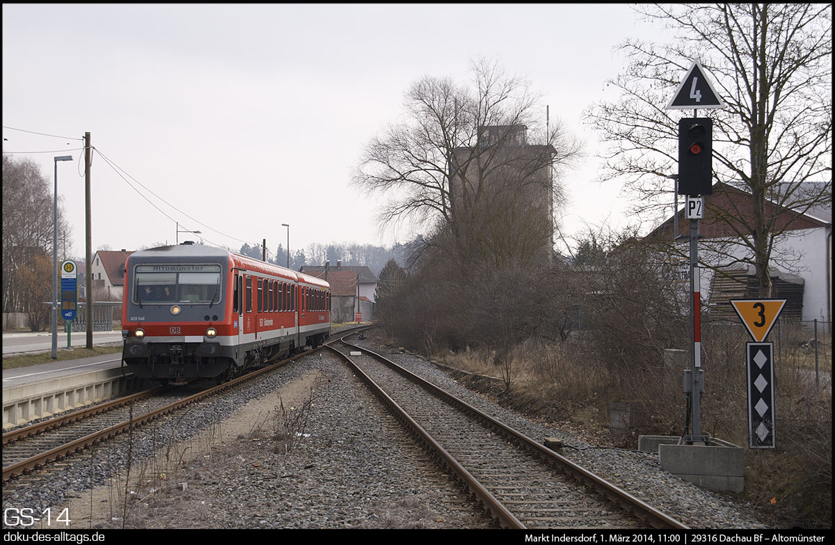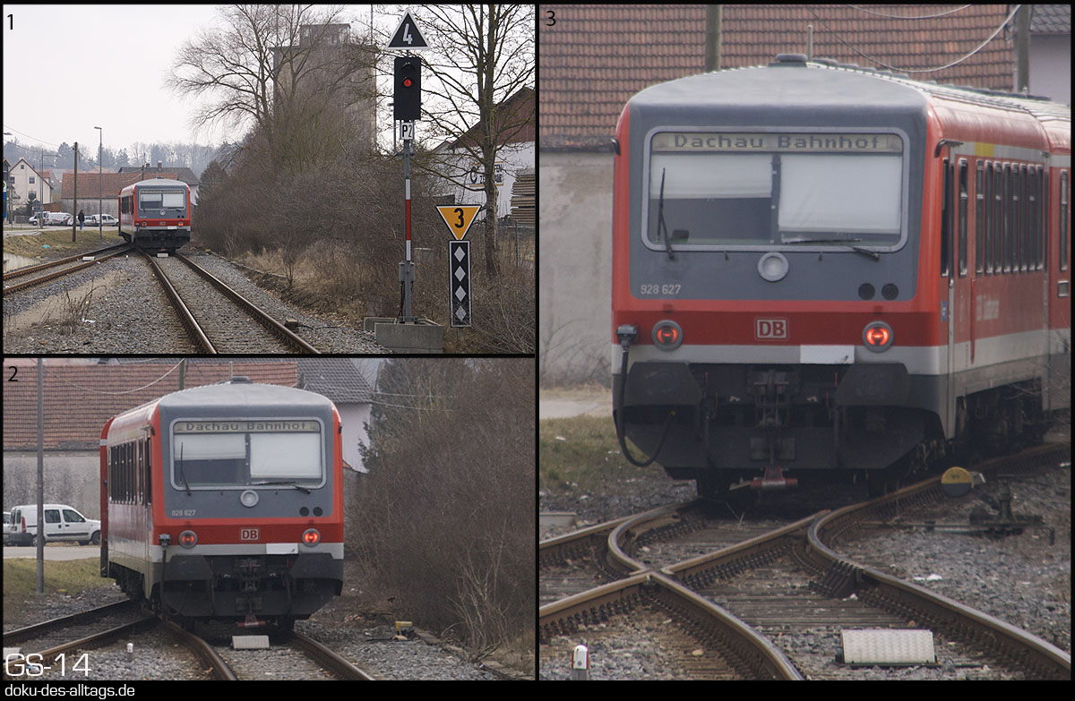 | 1.) 628 627 von Altomünster kommend bei der Einfahrt auf Gleis 2. | |||||