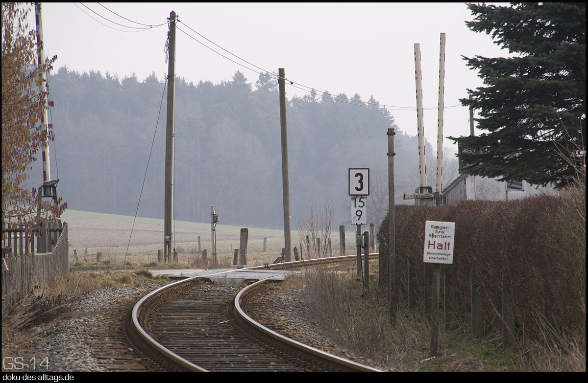 | 6.) Die Ausfahrtskurve Richtung Dachau mit Bahnübergang und Rangierhinweis. | |||||