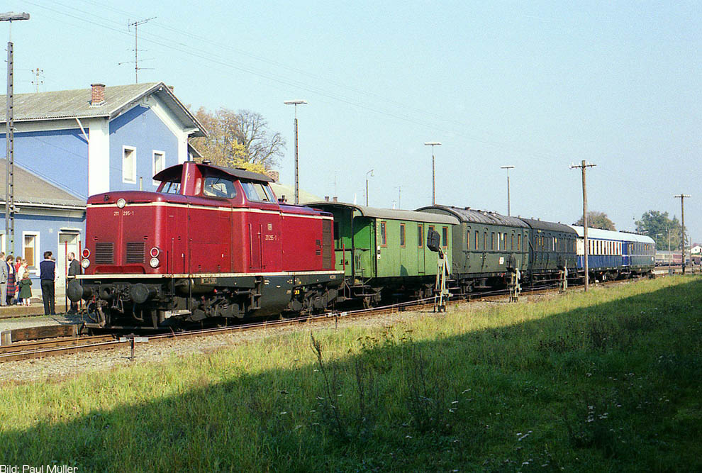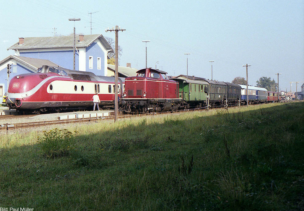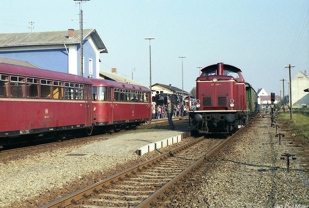 Am 28.10.1984 fand anlässlich des 125-jährigen Jubiläums „125 Jahre Eisenbahn München - Landshut - Donau“ in Geiselhöring ein Bahnhofsfest mit Fahrzeugausstellung statt. Der Isartalbahner war dort. Von ihm stammen die folgenden Bilder und Texte: | |||||||||||