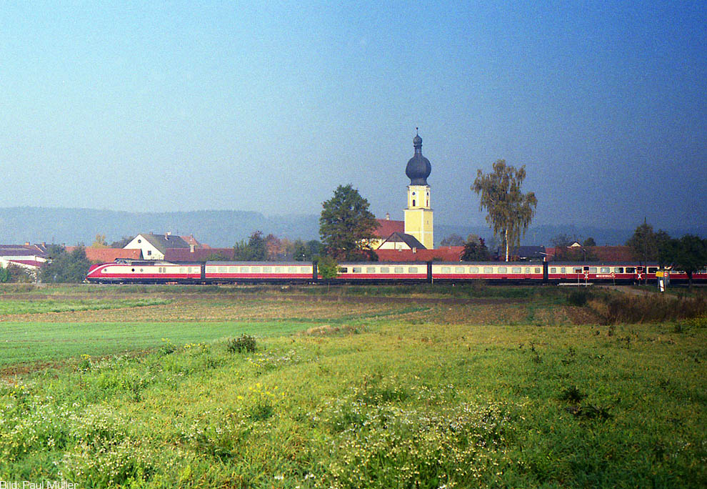 13.) 10-teiliger 601 als Pendelzug Straubing - Neufahrn[Ndb]passiert den Ort Sallach Richtung Neufahrn[Ndb] - vorderer Teil. Der Platschari auf der Seite könnte „Alpen-See-Express“ heissen. | |||||||||||
