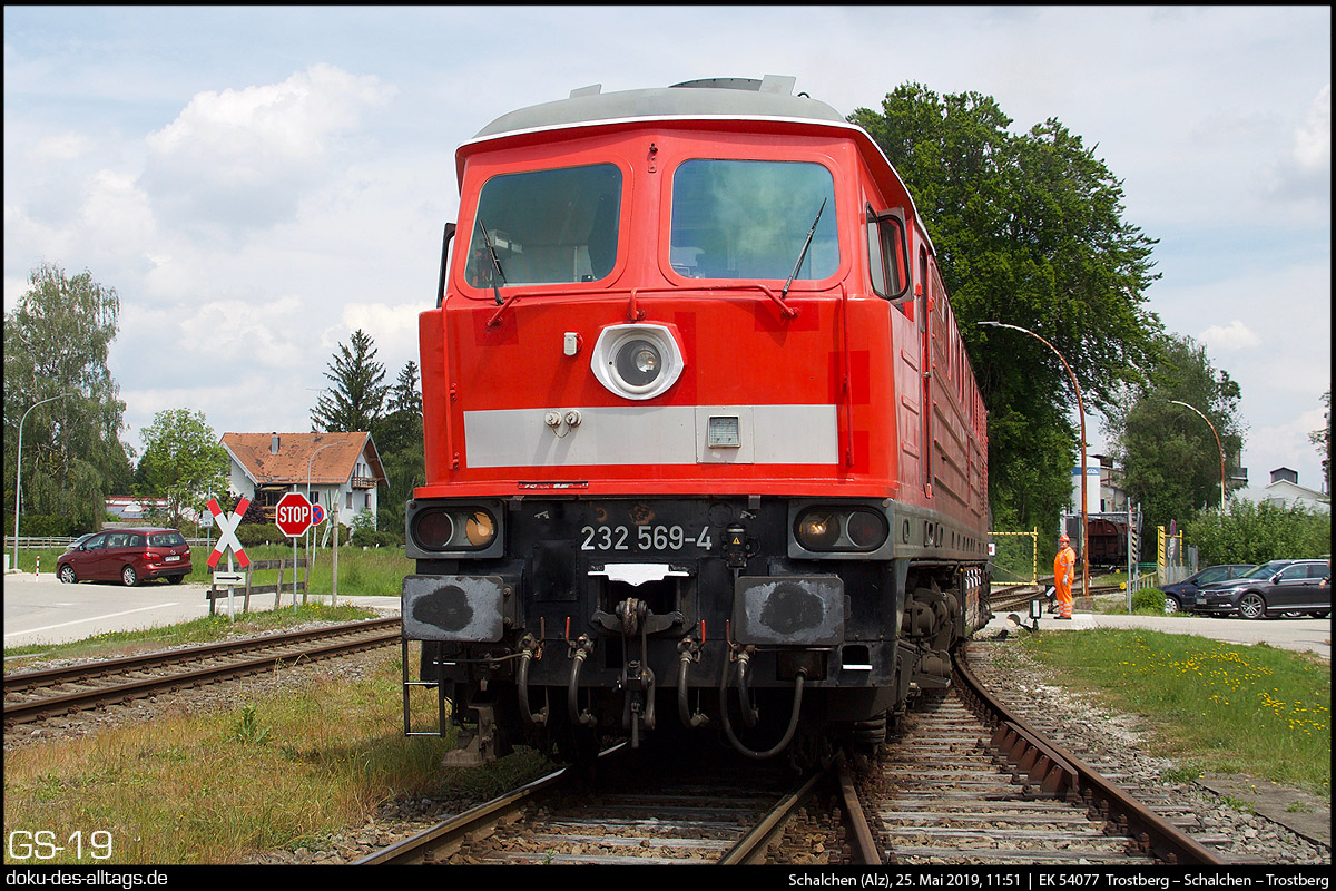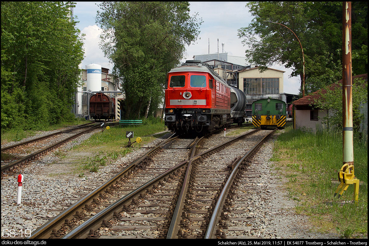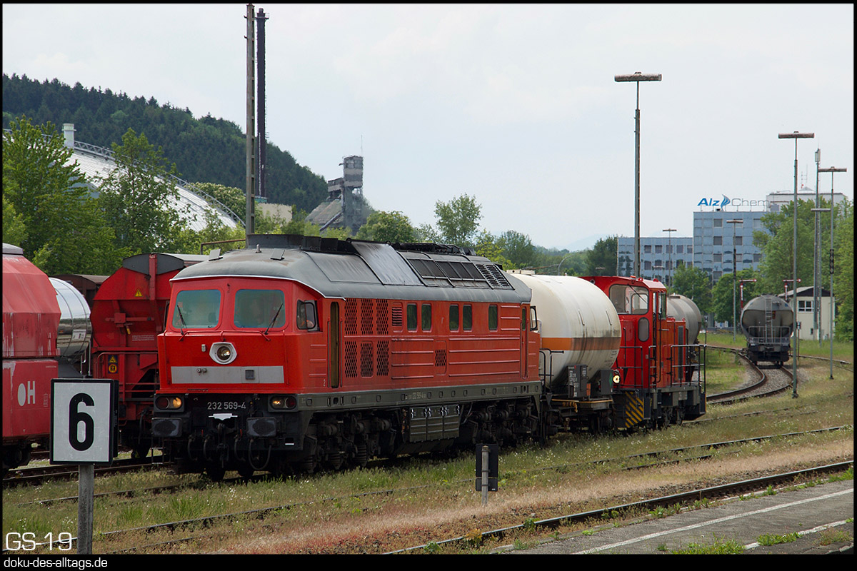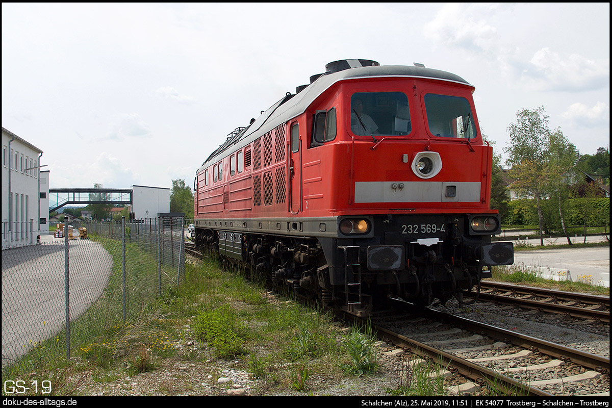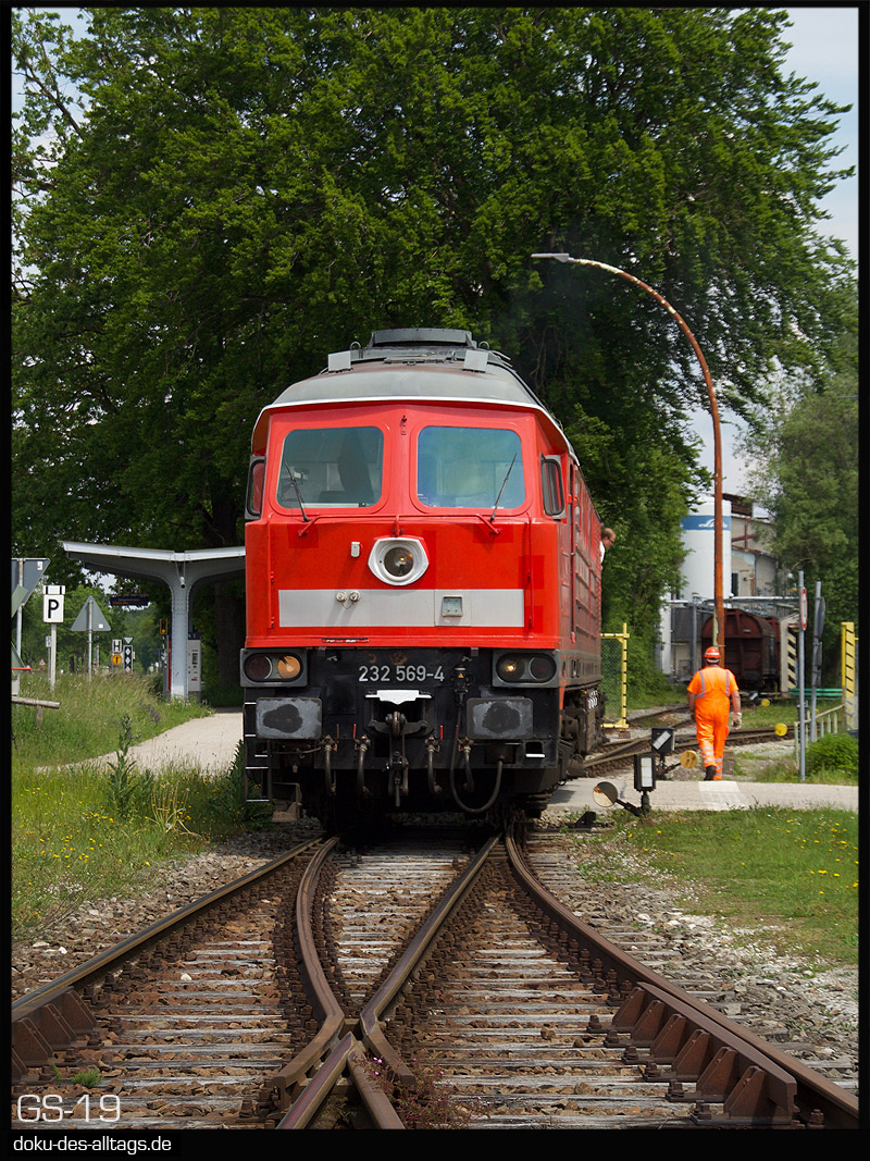 | 1.) 232 569 ist von Traunstein mittels Sperrfahrt zum Werksanschluss Linde in Schalchen gefahren, um dort einen Wagen abzuholen. Normalerweise wird diese Leistung von einer 294 gefahren, zur Feier des Tages durfte eine Ludmilla auf diese Strecke.