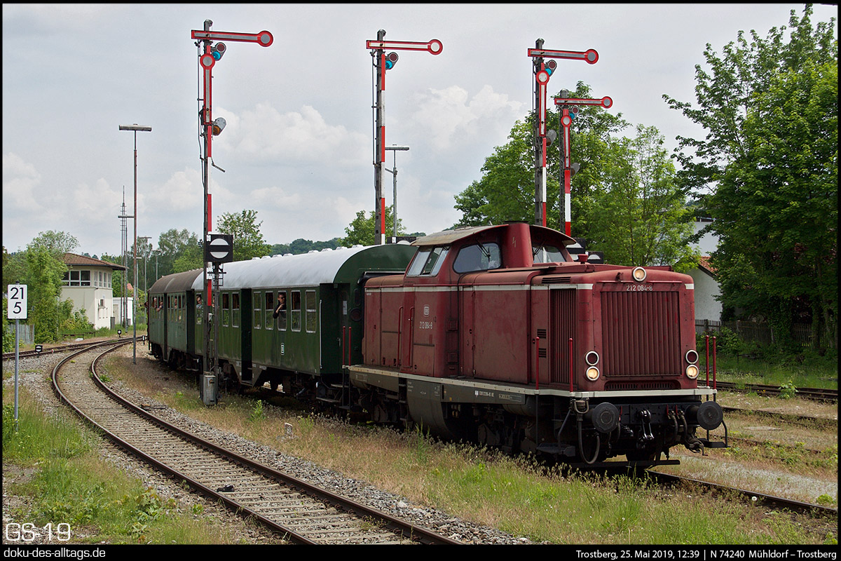 | 19.) Nun ist es 12:39, der nächste Zug mit 212 084 kommt aus Mühldorf. Die Abfahrt dort war um 12:05. | ||||||||