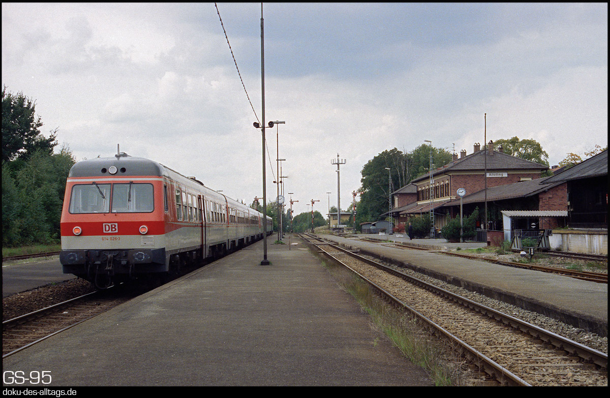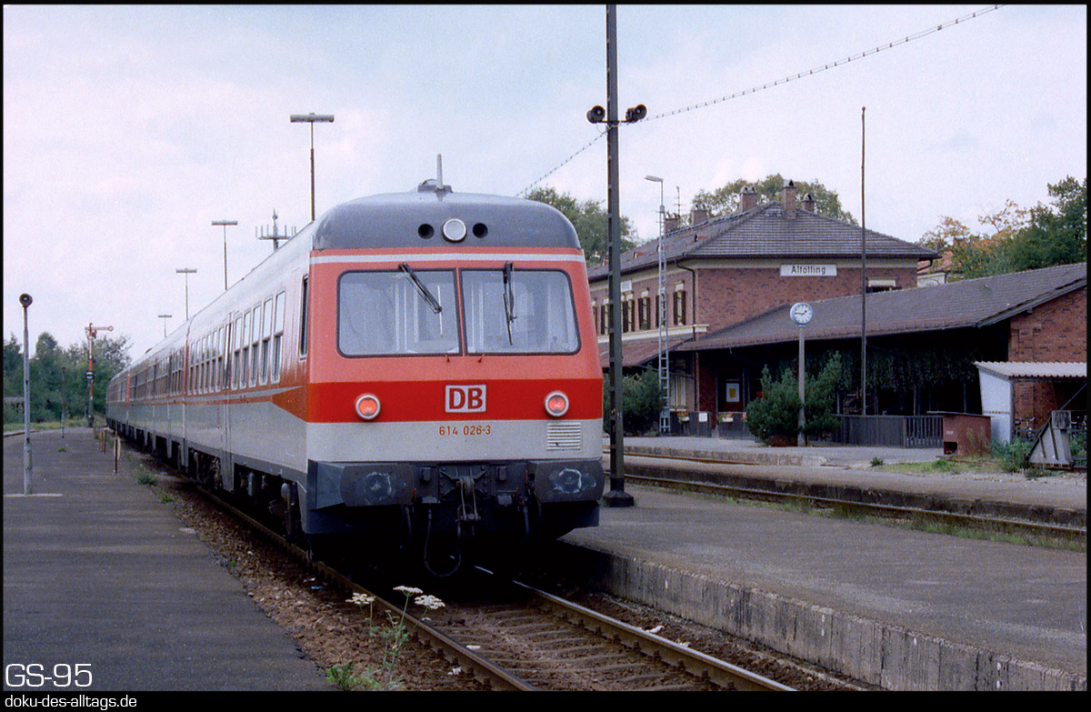 Für Pilgersonderzüge nach Altötting wurden früher desöfteren Triebzüge der Reihe 614 (Bw Nürnberg) eingesetzt. Im Spätsommer 1995 traf ich zum ersten und einzigen Mal eine Doppelgarnitur aus zwei dreiteiligen 614-Züge an.