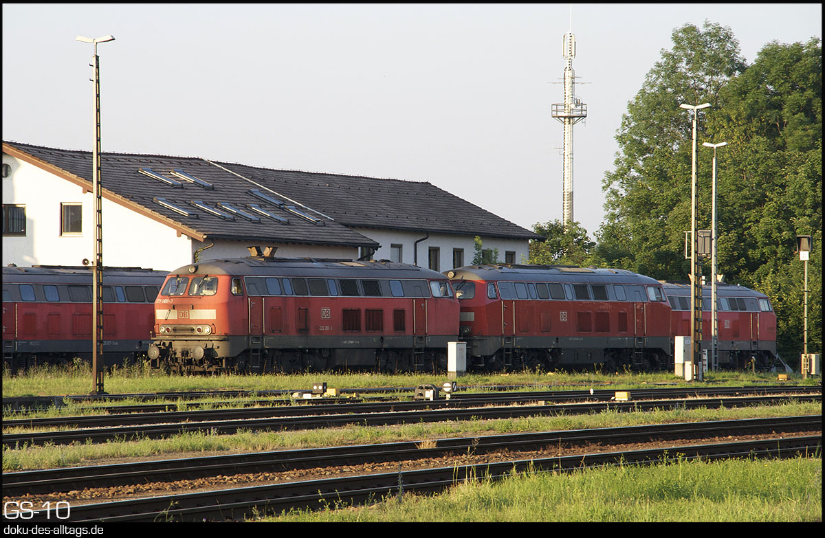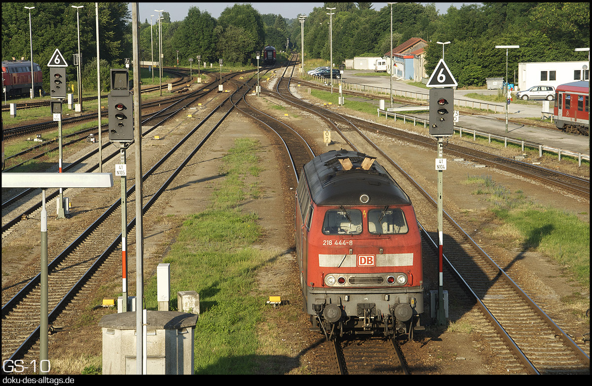 | 4. + 5.) 218 444 wurde abgekuppelt und rollt nun Richtung Bw. Sie gehört wieder zu jenen Exemplaren, die nur in Kempten und Mühldorf beheimatet waren: