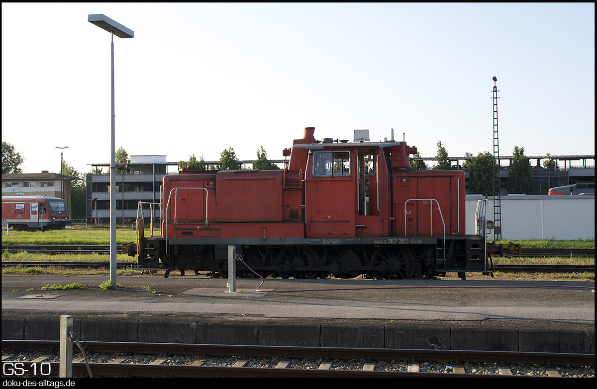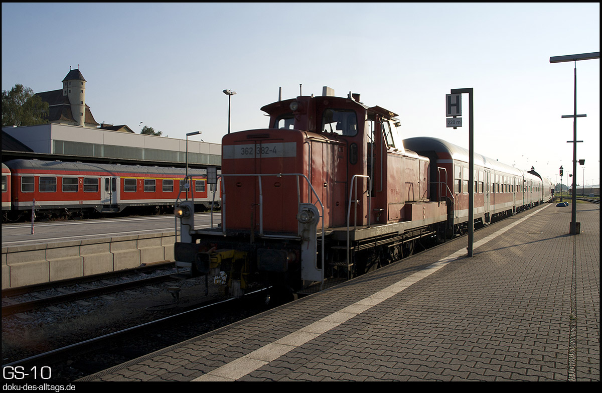 | 6.) Die Wagengarnitur von der RB 27067 aus München steht noch auf Gleis 4. Davor hat sich nun 362 382 mit den beiden n-Wagen gesetzt. | |||||||