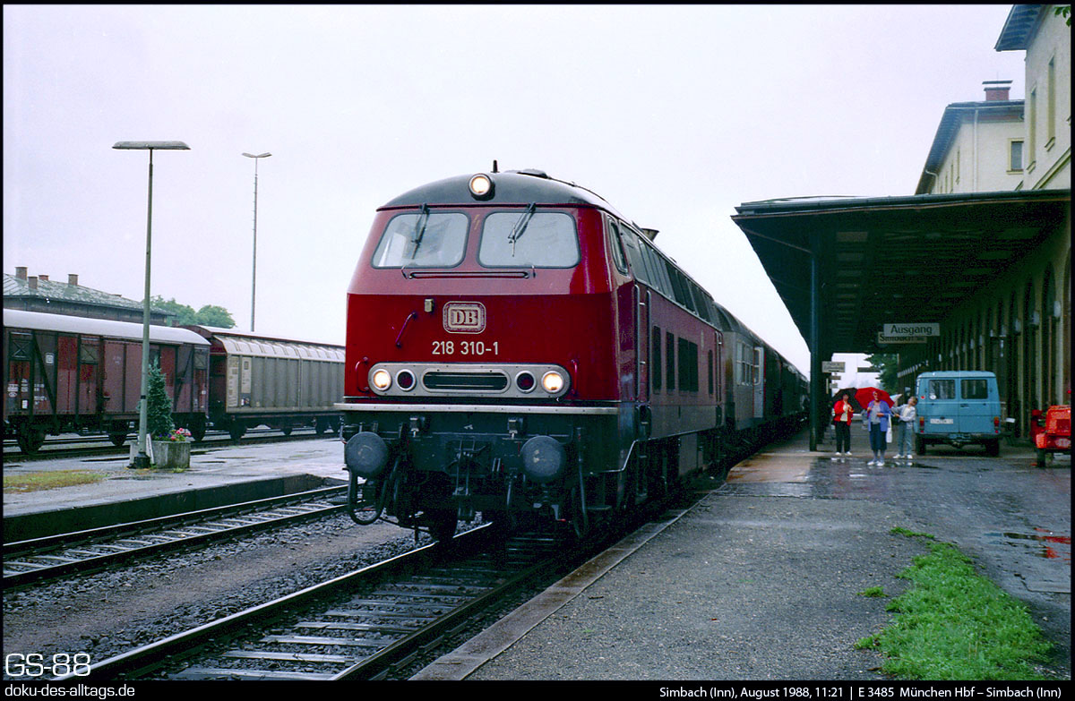 1.) 218 310 im Grenzbahnhof Simbach kurz nach der Ankunft um 11.25 aus München, mit dem E 3485 am Haken. Die Abfahrt in München Hbf war um 9:51 von Gleis 12.