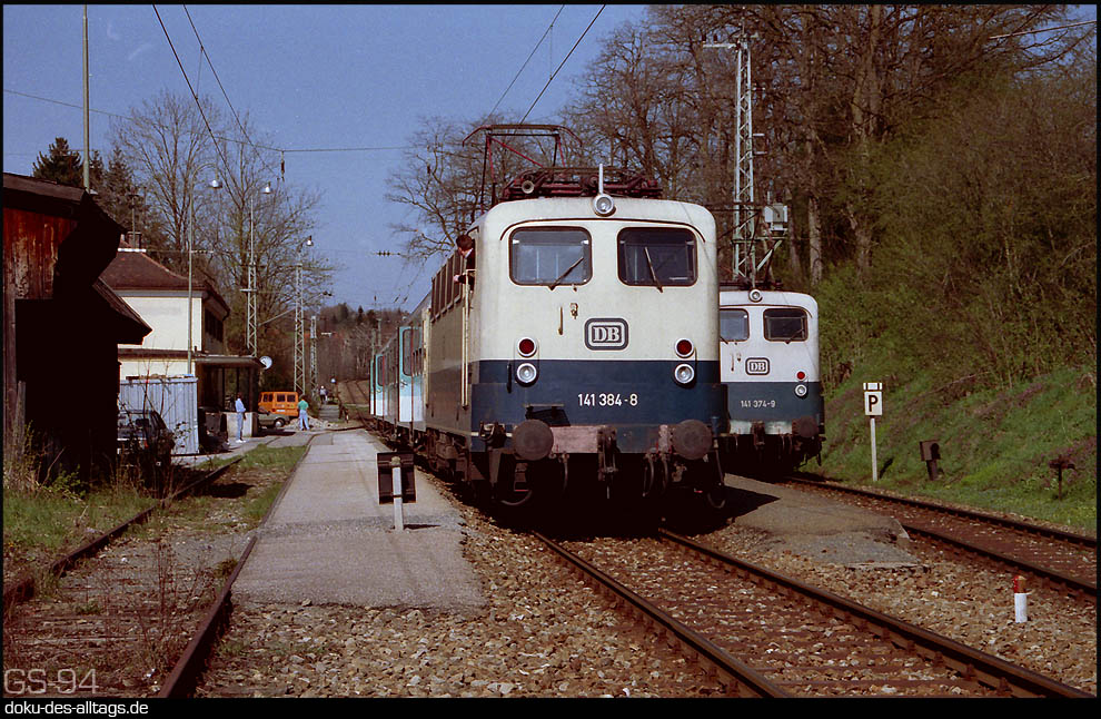 | 2.) 141 374 schiebt ihren Zug bereits weiter Richtung Oberammergau, der Lokführer von 141 384 wartet noch auf den Abfahrtsauftrag. | ||||