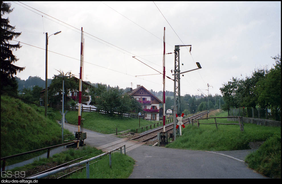 | 6.) Die Ausfahrt nach Oberammergau. Wie häufig an dieser Strecke stehen auch in Bad Kohlgrub anstatt der Ausfahrtsignale beleuchtete Haltetafeln. | ||||
