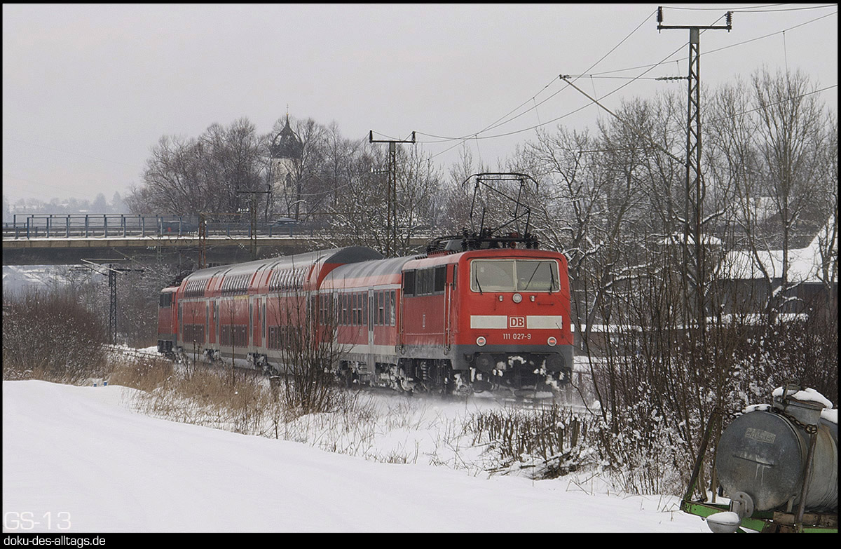 | 7.) Gleich darauf eine Überführungsfahrt Richtung München. Der Zielanzeiger in 111 027 zeigt "nicht einsteigen". | |||||||