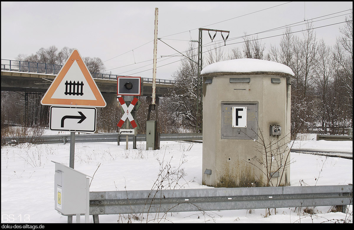 | 8.) Stilleben am Bahnübergang kurz vor der Autobahnbrücke. | |||||||