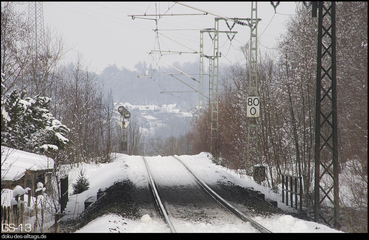 | 10.) Der Blick unter der Autobahnbrücke hindurch zum km 80,0 und zum Einfahrtvorsignal. | |||||||