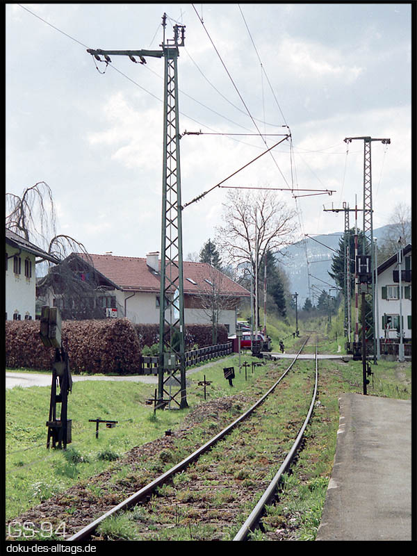 | 1.) Wenn auch auf nur 1 Gleis reduziert, macht der Bahnhof Saulgrub auch 1994 noch einen malerischen Eindruck. | ||||||
