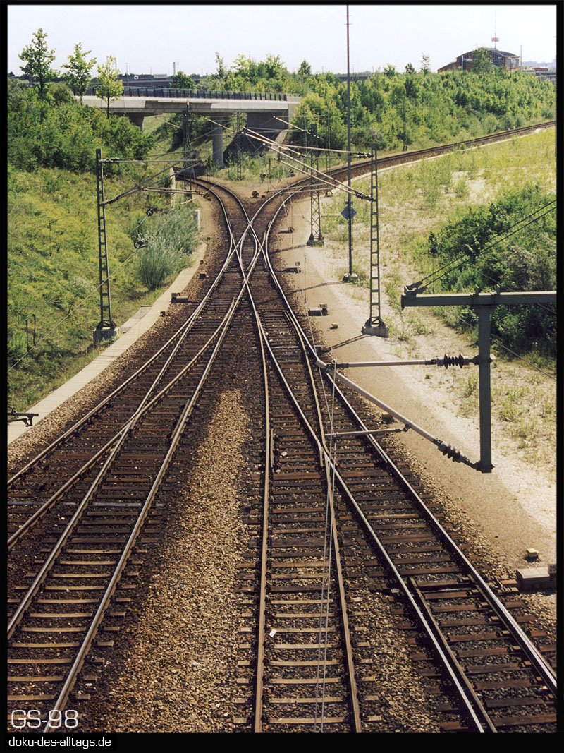 | 7.) Schöne Gleisgeometrie im Bereich der Bw-Ausfahrt. An der DKW teilen sich die Gleise nach der Nord- und Südseite des Rangierbahnhofs. | ||||||