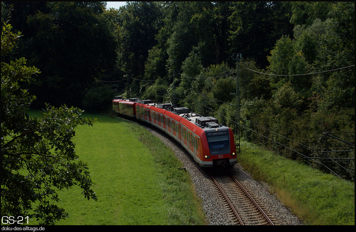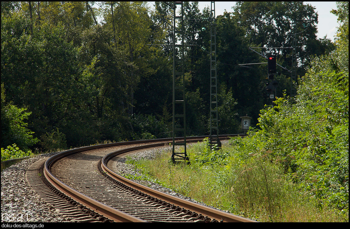 | 8.) Der folgende Abschnitt liegt in einem Starken Gefälle bis Seefeld-Hechendorf. Von dort kommt 423 770 gerade herauf. Der Vorsignalwiederholer weist auf das Einfahrsignal von Seefeld-Hechendorf hin, das ein Stück weiter um die Kurve liegt. | ||||||||