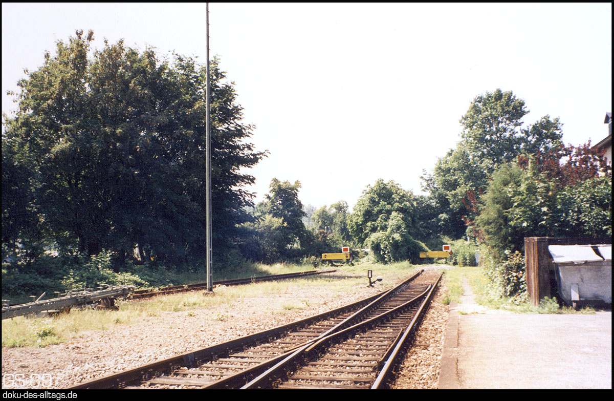 | 2.) Das Streckenende. Bis 1945 überquerte die Strecke den Rhein nach Neuf Brisach und weiter bis Colmar. Links im Bild liegt der Mast eines Formsignals, das wohl noch lange an der ehemaligen Ausfahrt als nichtstellbares Signal stand. |