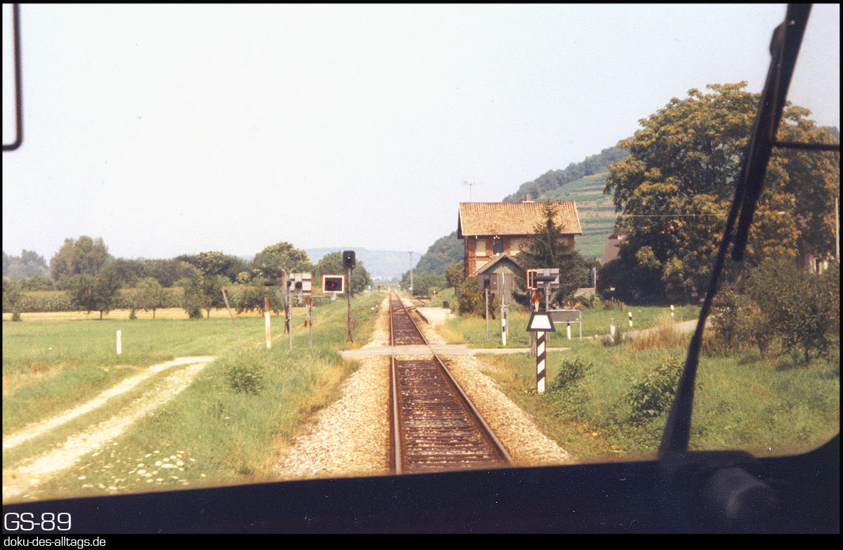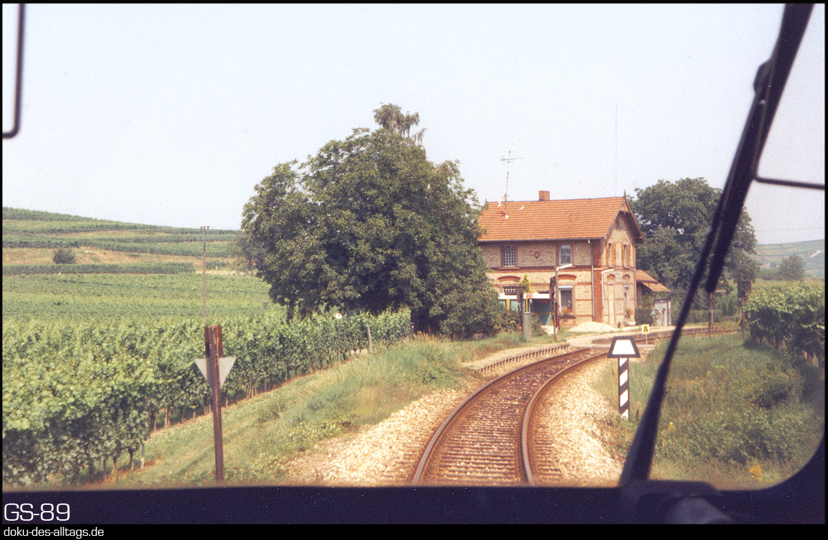 | 15.) Der Hp Burkheim-Bischoffingen (km 18,6), dessen Bahnhofsgebäude mitten im Wein steht. | |||||