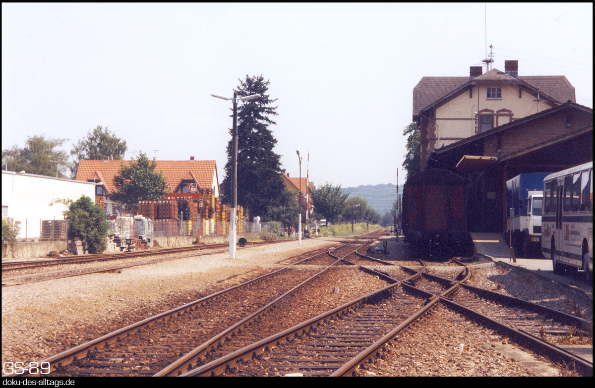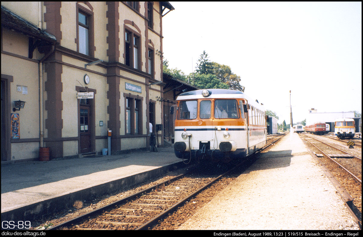 | 22.) Ankunft in Endingen (km 5,5). Rechts hinten das Betriebswerk mit illustrem Fuhrpark. | |||