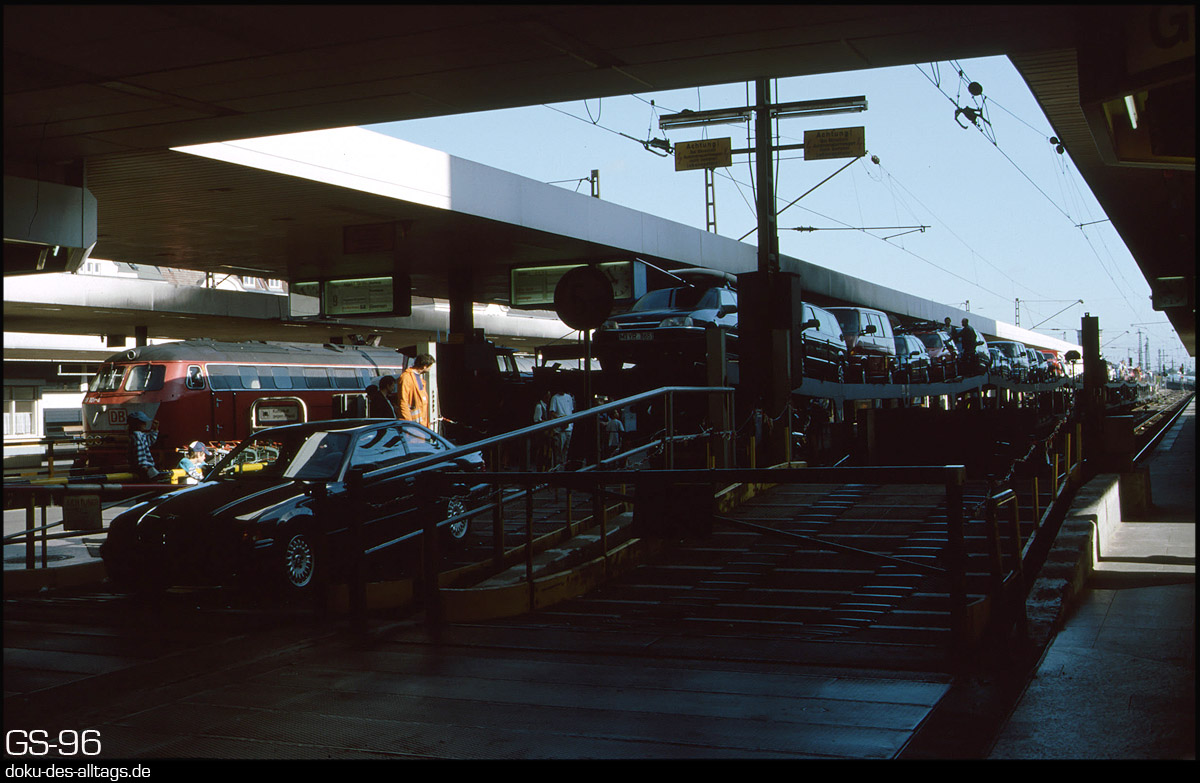 | 5.) Auf Gleis 10 ist nun der Entladevorgang der Autos im Gange. Über den Querbahnsteig gehts ins Freie. Der Deichgraf hat inzwischen Gleis 11 verlassen. | |||||