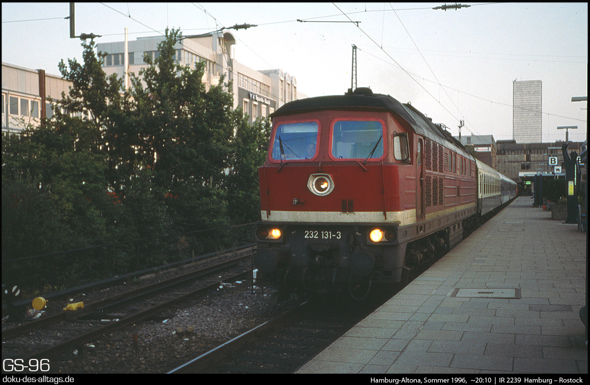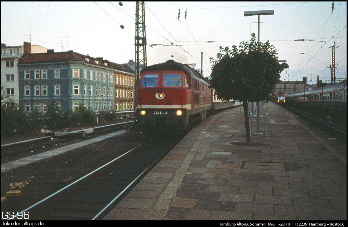 | 8.) Wenig später auf der anderen Seite des Bahnhofs: 232 131 wartet mit einem Interregio nach Rostock auf die Abfahrt. | |||||