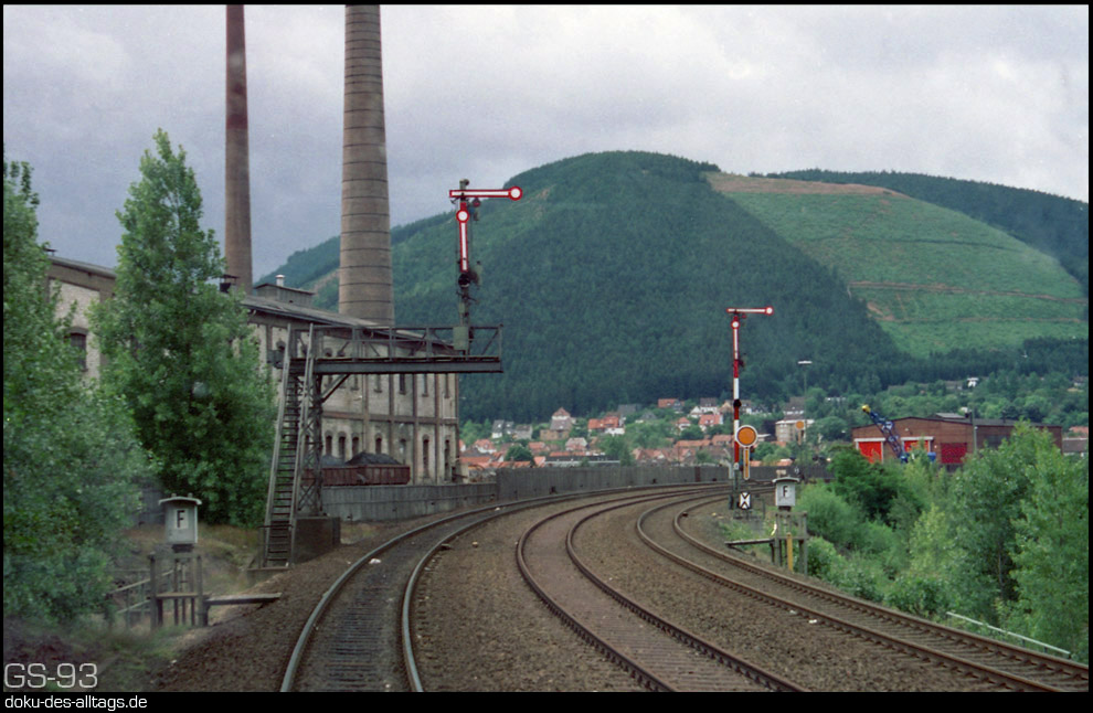 | 22.) Kurz vor Bad Harzburg führt die Strecke an der Zinkhütte Harlingerode vorbei. Im Hintergrund das Einfahrtvorsignal von Oker. | ||||||||