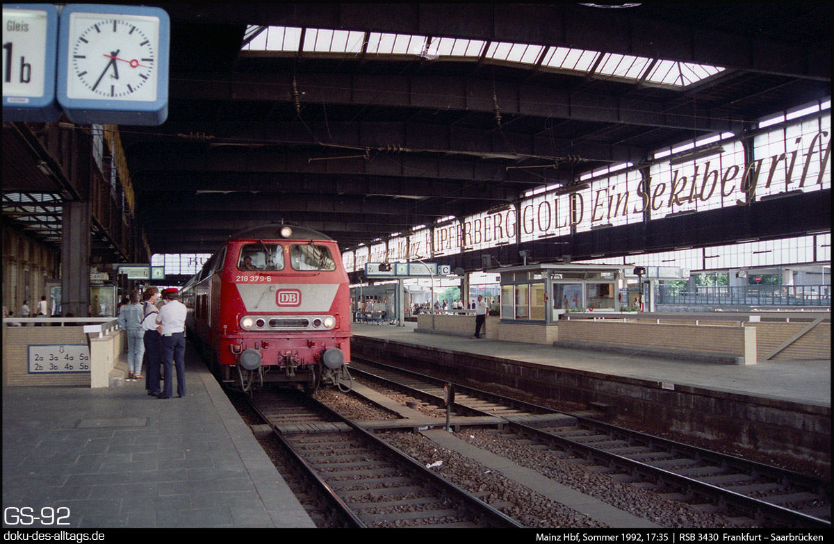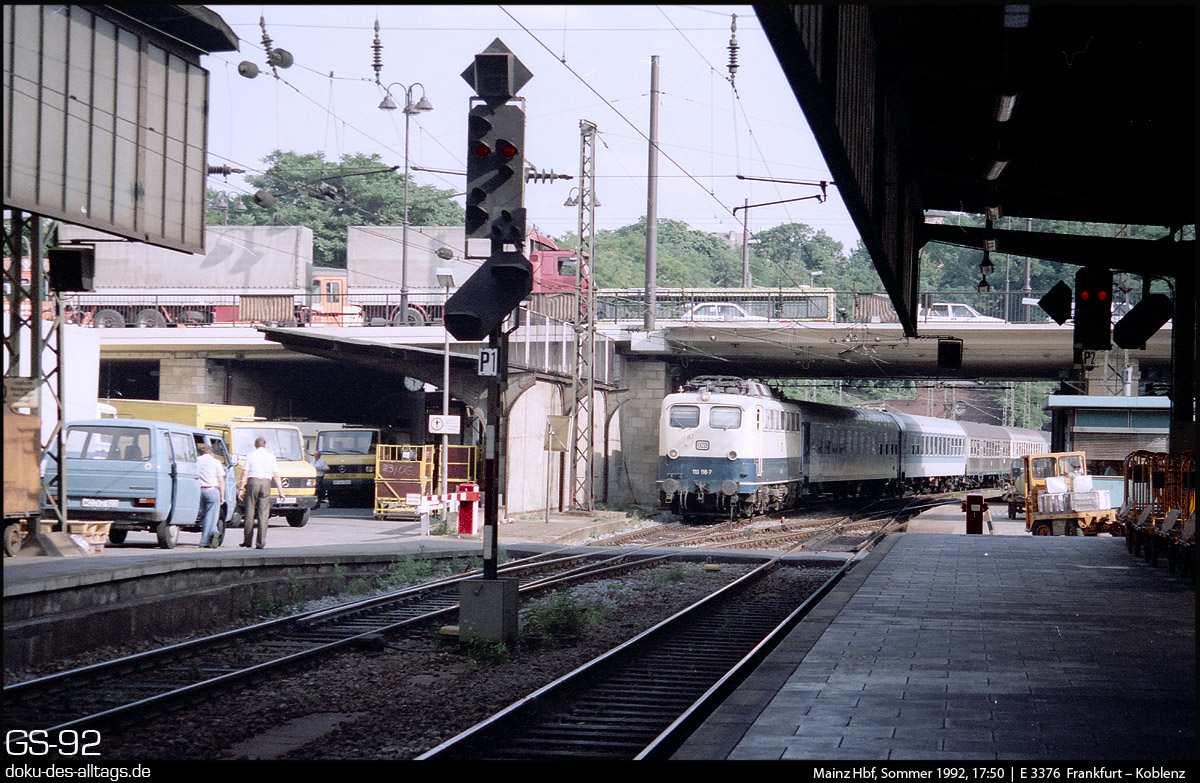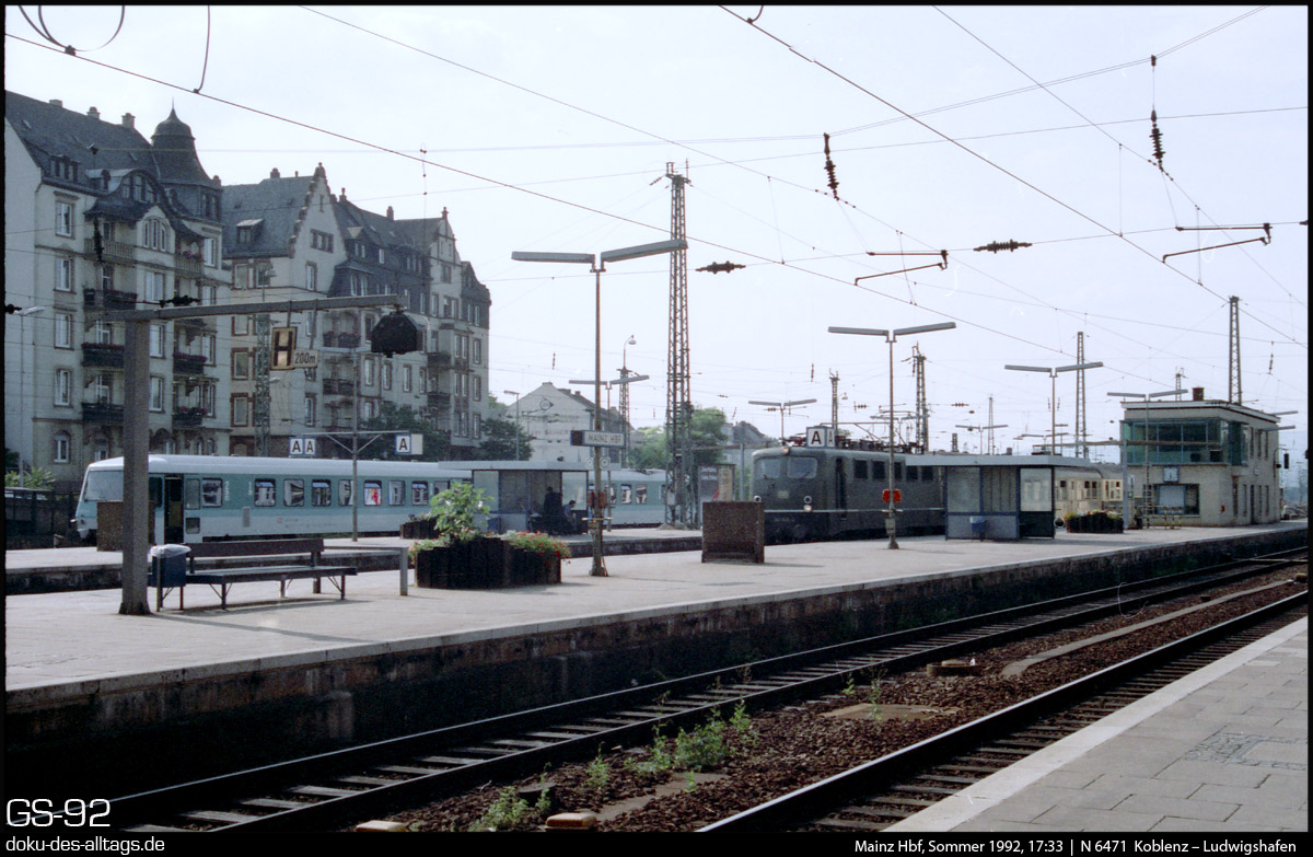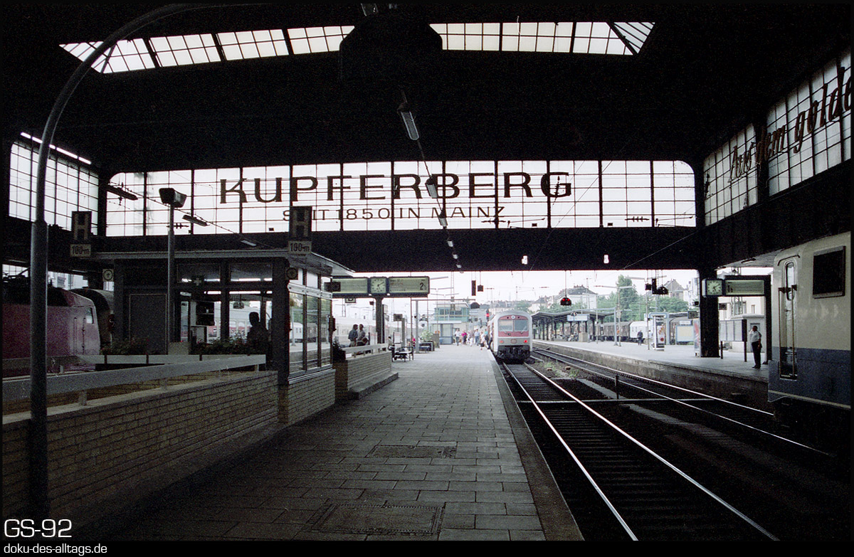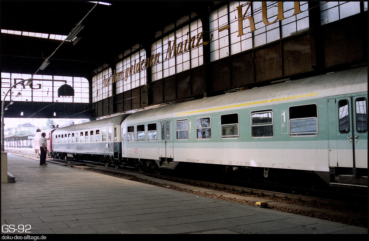 Die Bilder entstanden im Sommer 1992 in der chronologischen Reihenfolge Wiesbaden Hbf Mainz Süd Mainz Hbf am selben Tag. Der weiterführende Link zu Frankfurt ist wegen der Themenverwandtschaft gegeben, die Bilder dort entstanden aber an einem anderen Tag. |