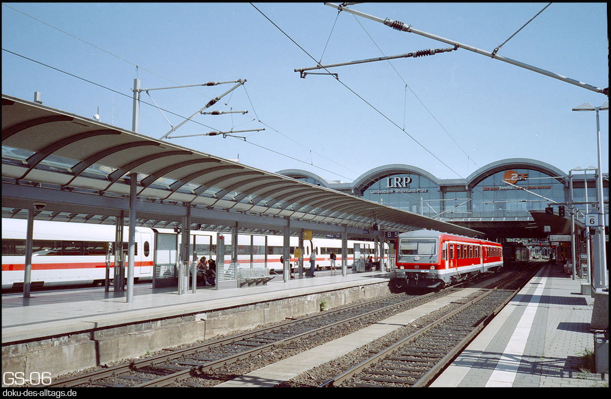 | 17.) Zum Vergleich: Mainz Hbf im Sommer 2006 mit neuer Halle. 628 464 ist auf dem Weg nach Türkismühle. | |||