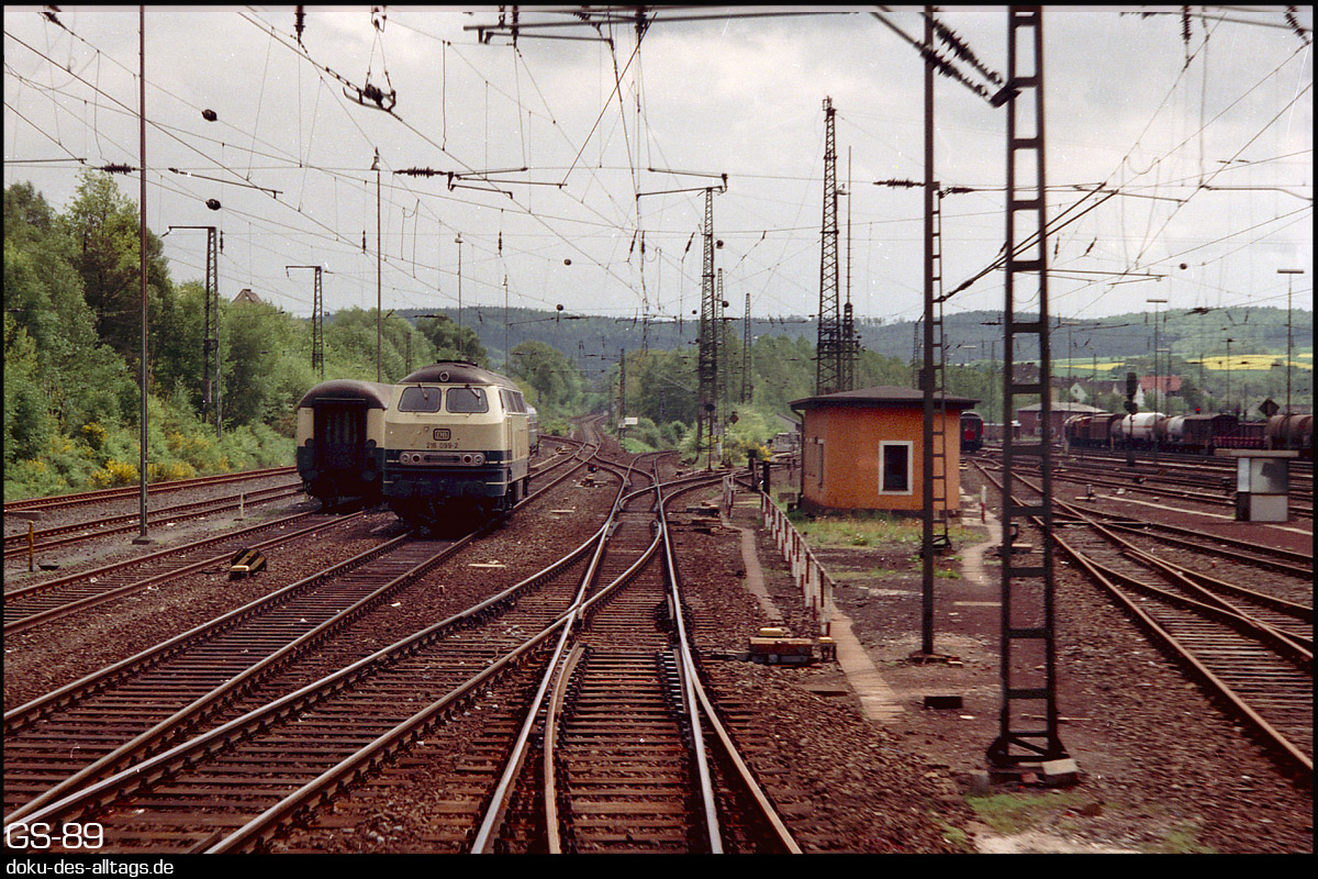 17.) Fahrt durch das Vorfeld des Personenbahnhofs, wo 216 099 abgestellt ist. Nach links steigen die Streckengleise nach Eisenach an.
