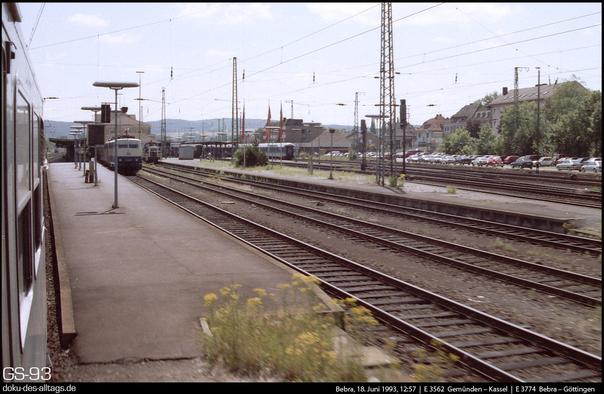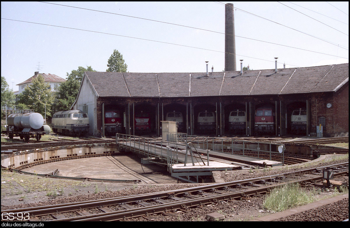 Das Bw Bebra war inzwischen schon ohne eigenen Tfz-Bestand. 1992 waren hier noch 18 Loks der Baureihe 140 und 28 Loks der Baureihe 141 statoniert.