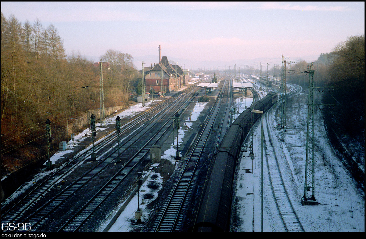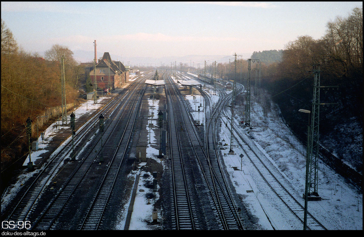 | 1.) Der Bahnhof Eichenberg von der Brücke am südwestlichen Bahnhofskopf aus gesehen. | |||||