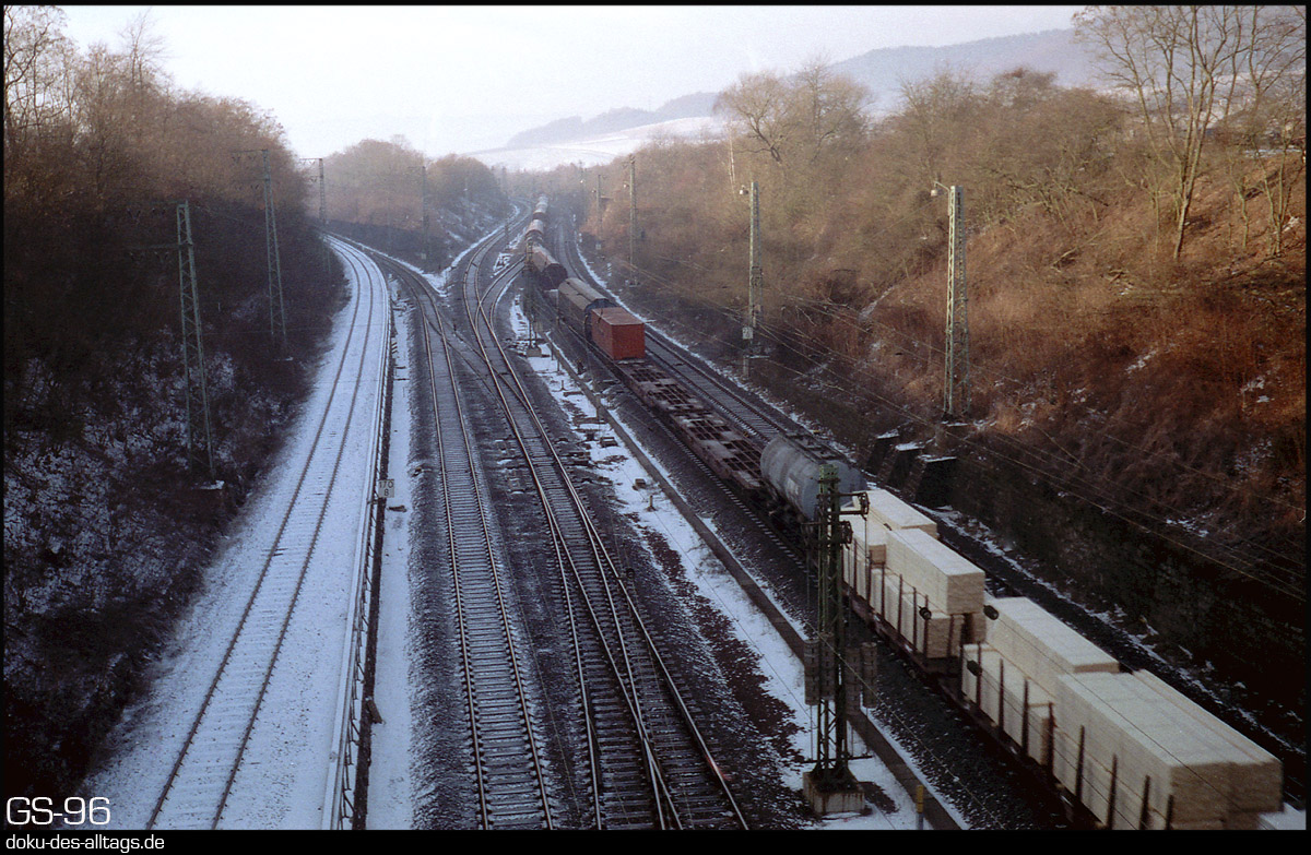 | 5.) Der lange gemischte Güterzug schlängelt sich um die Kurve Richtung Bebra. | |||||