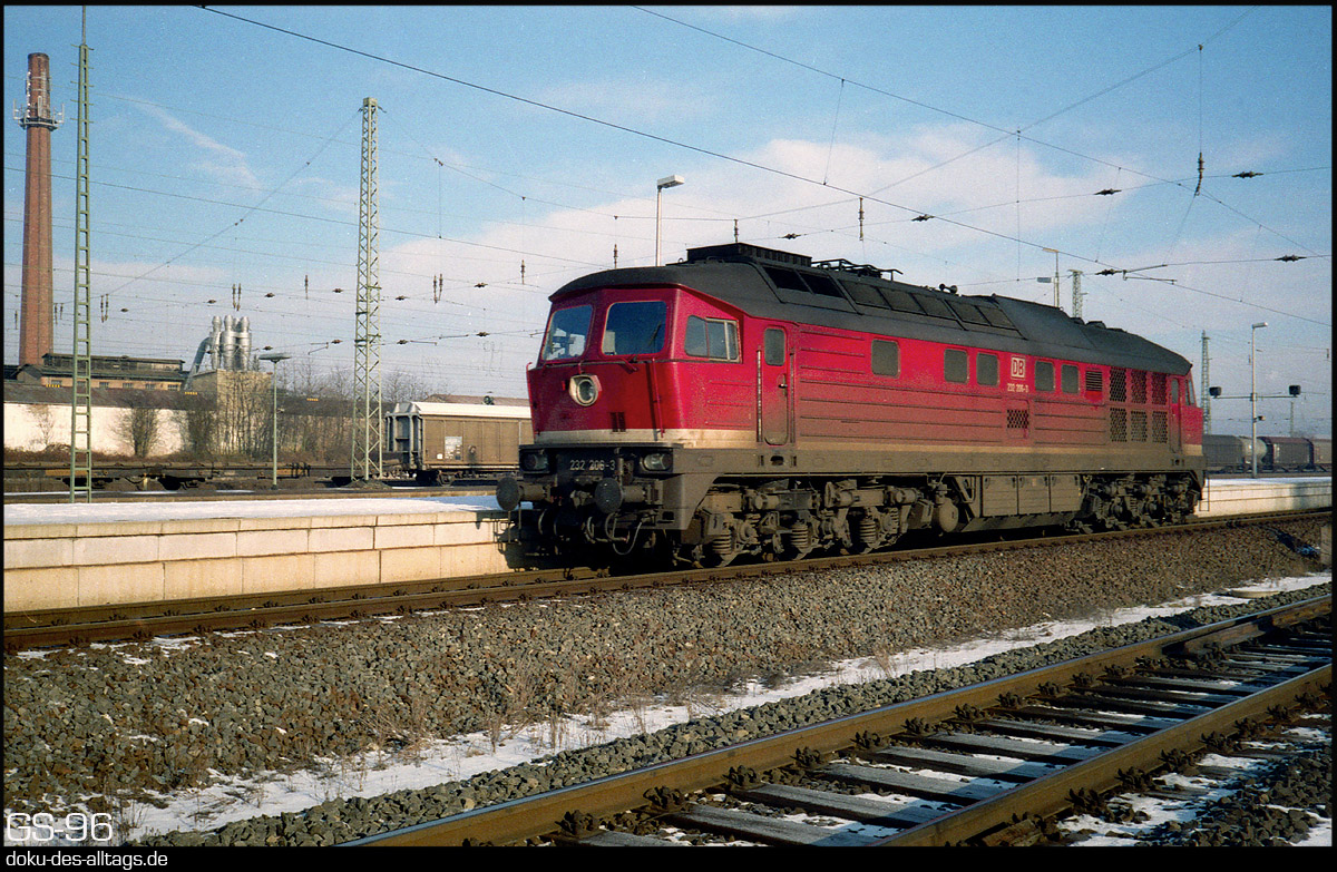 | Die auf den Bildern 18. und 19. zu sehende 232 206 wurde im Jahr 2003 in 233 206 umgezeichnet. Im März 2010 wummerte sie mit dem täglichen Güterzug aus Buchloe über meine Hausstrecke nach München. Seit Februar 2011 ist sie z-gestellt. | |||||