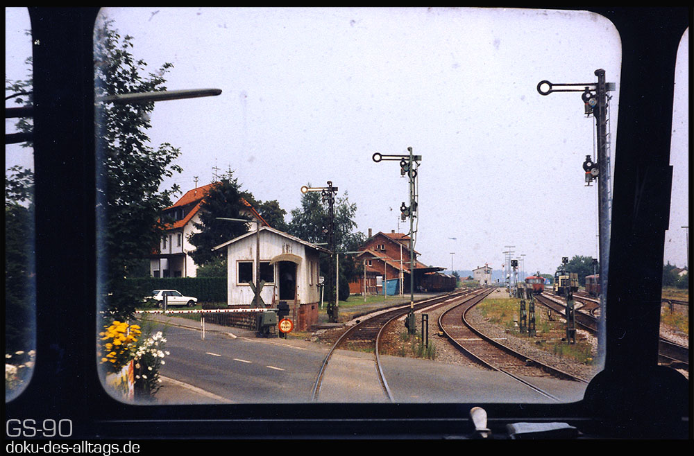 | 6. + 7.) Einfahrt aus nördlicher Richtung in den Bahnhof. Das badische Stellwerk ist irgendwann erweitert worden und schließlich noch verputzt worden. | |||||