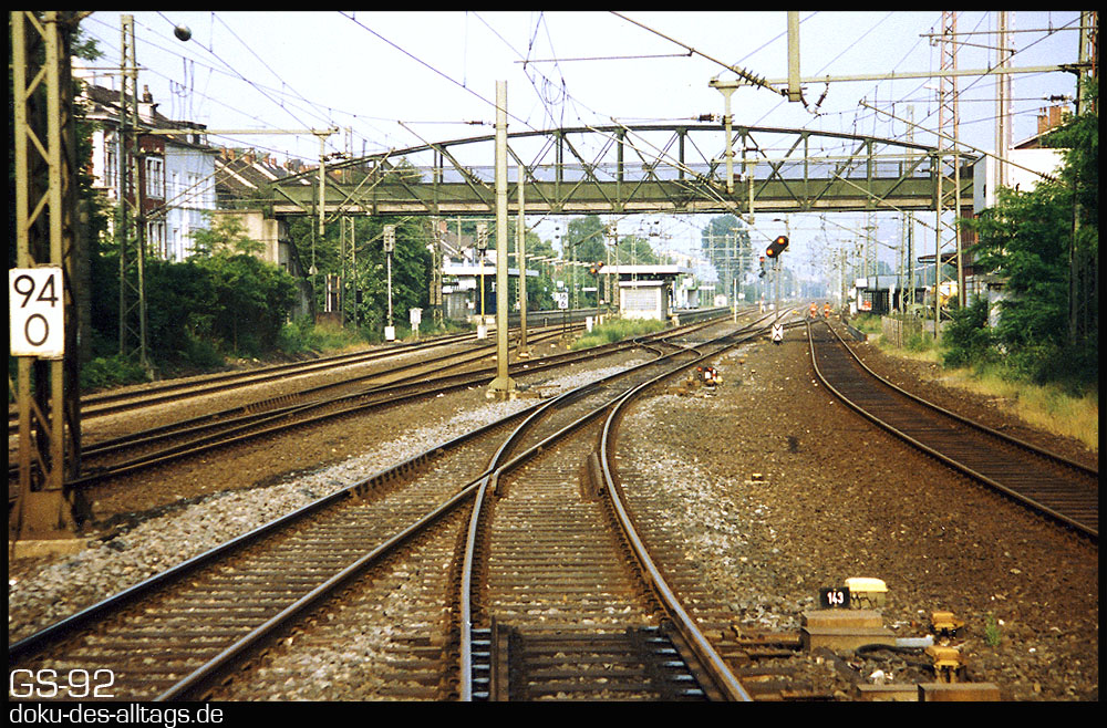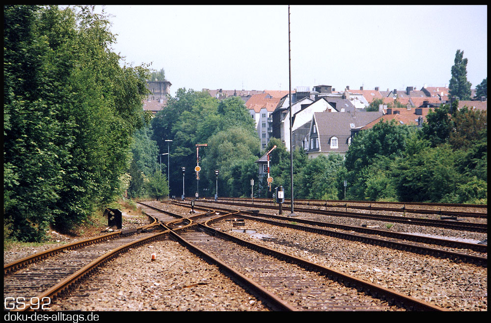 | 5. - 7.) In Düsseldorf-Gerresheim zweigt die Strecke von der Strecke Düsseldorf - Hagen ab. Diese drei Bilder zweigen der Verlauf zwischen Abzweig und Einfahrtsignal. |