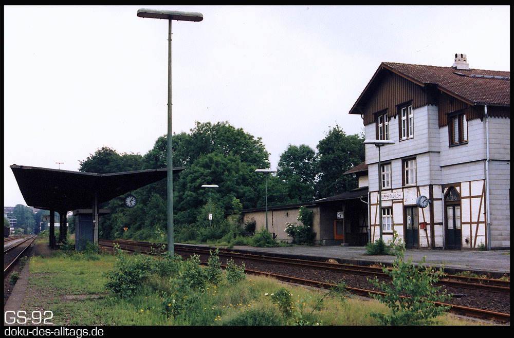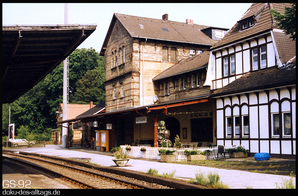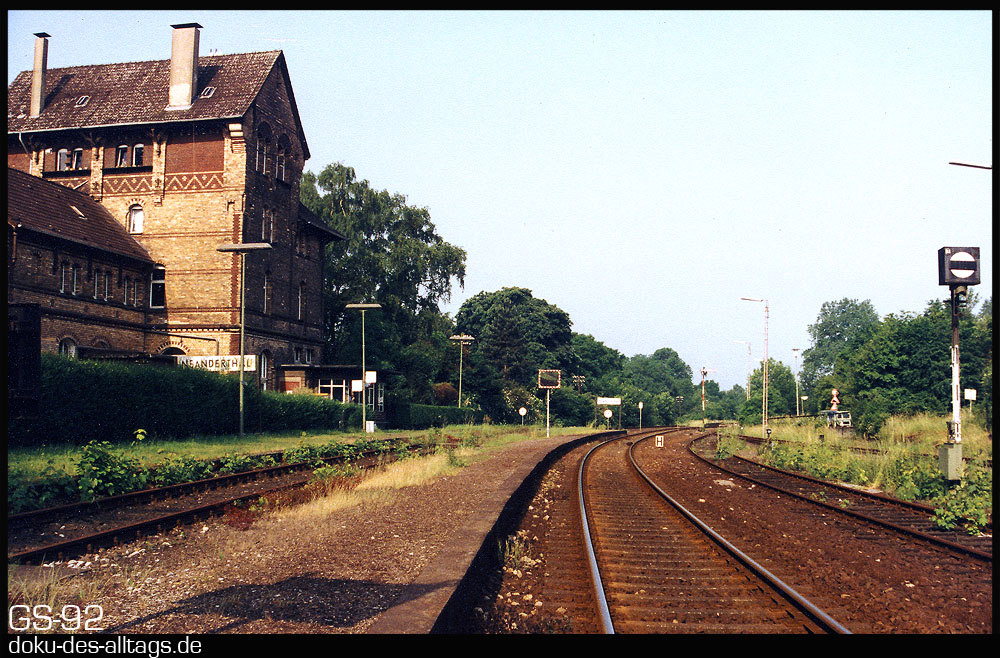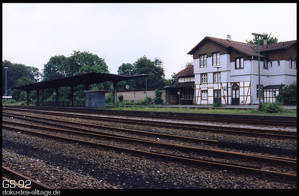 | 10.) Der Bahnhof Neanderthal, ein wahres Idyll mitten im Grünen. Allerdings war hier nur noch ein Gleis befahrbar. Gleis 1 ist gesperrt. |