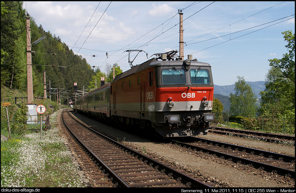 | 7.) 1144 214 folgt dem Regionalzug R 2953 im 12-Minuten-Abstand mit dem Eurocity nach Maribor. | ||||