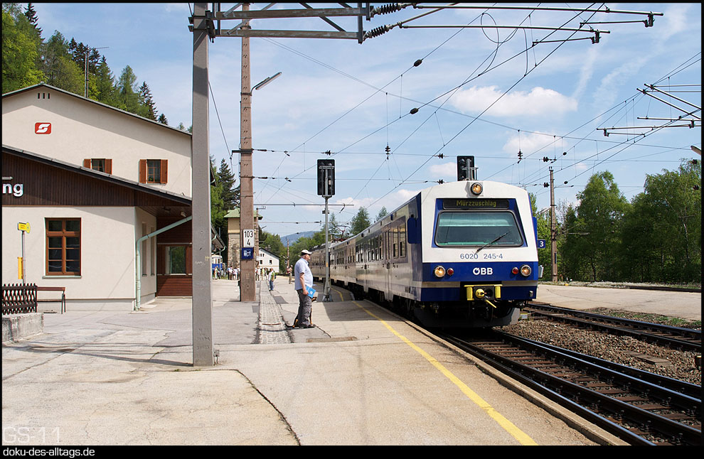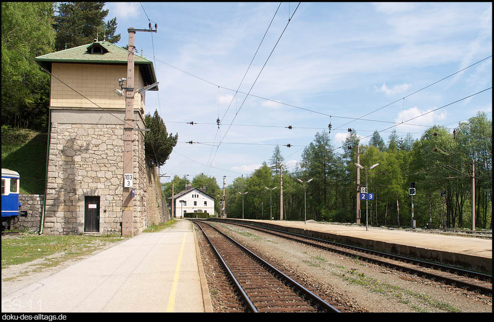 | 2.) Ankunft in Semmering etwa um 11 Uhr. Wenn keine Zugkreuzung anfällt, halten die Personenzüge beider Richtungen auf Gleis 1. | ||||