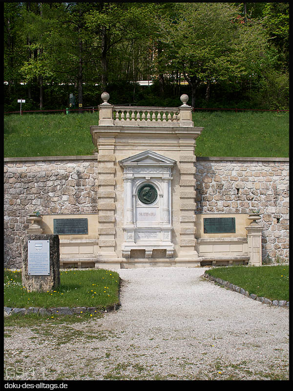 | 4.) Rechts neben dem Empfangsgebäude erinnert ein Denkmal an den Konstrukteur der Semmeringbahn, Carl von Ghega. | ||||
