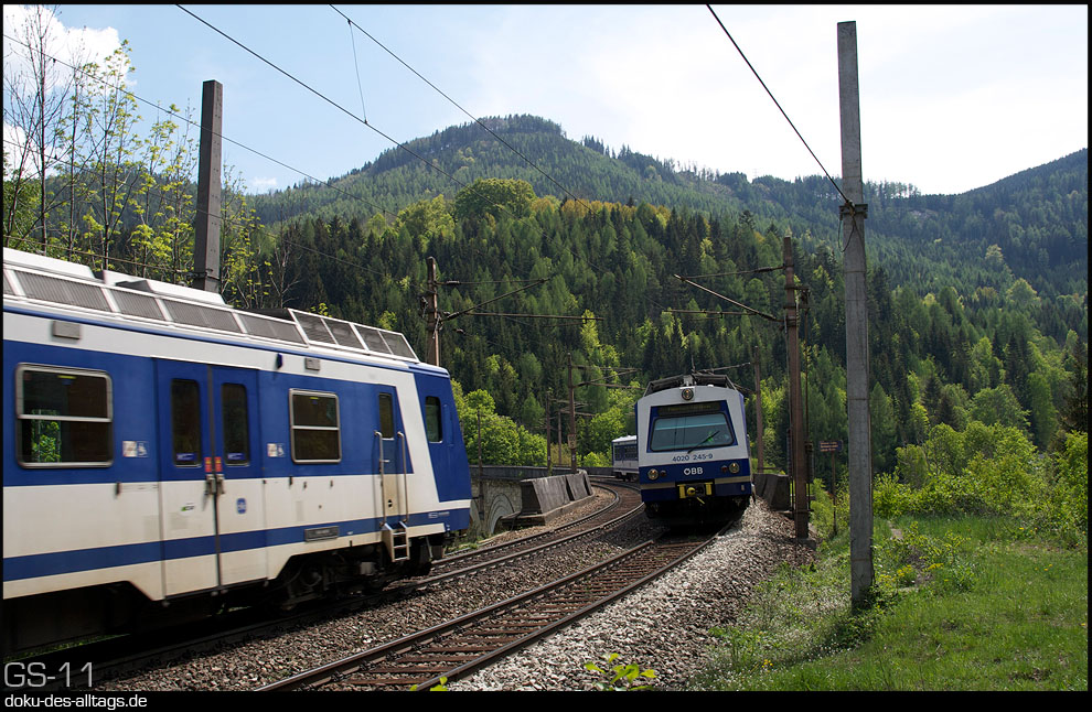 | 45. - 47.) Begegnung zweier 4020 beim km 100,4 oberhalb des Adlitzgraben-Viadukts. | ||||