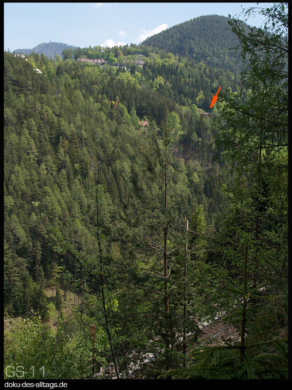 | 44.) Nach der Überquerung der Kalten Rinne jenseits des Roten Berges steht nun in einer weiteren Schleife die Überquerung des Adlitzgrabens an. Erst danach schließt sich der Weberkogel-Tunnel an. | ||||