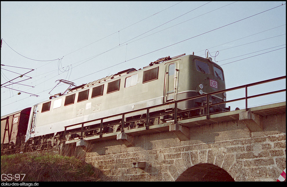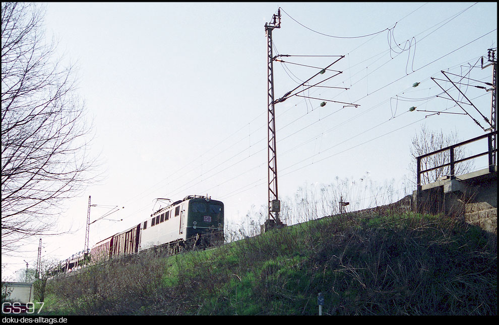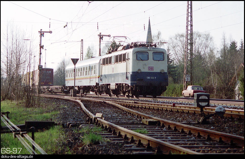 10.) Der 150 193 folgt 139 145 mit einer RoLa. Dahinter verbirgt sich die ehemalige 110 145, die zusammen mit 17 weiteren Kastenzehnern den Bestand der bisher 30 139ern (E 40.11) aufstockten. Zum Zebra wurde 139 145 nicht. 2009 wurde sie ausgemustert. | |||||||