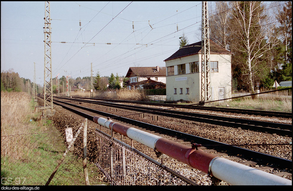 April 1997, die Bundesbahn war bereits seit mehr als 3 Jahren Vergangenheit, aber in Großkarolinenfeld stand die Zeit noch eine Weile still. Bis zum Jahr 2000. Ab dann regelte ein ESTW den Betrieb und der Bahnhof wurde zeitgerecht umgebaut. Heute erinnert eigentlich nur noch das Empfangsgebäude an den früheren Zustand.