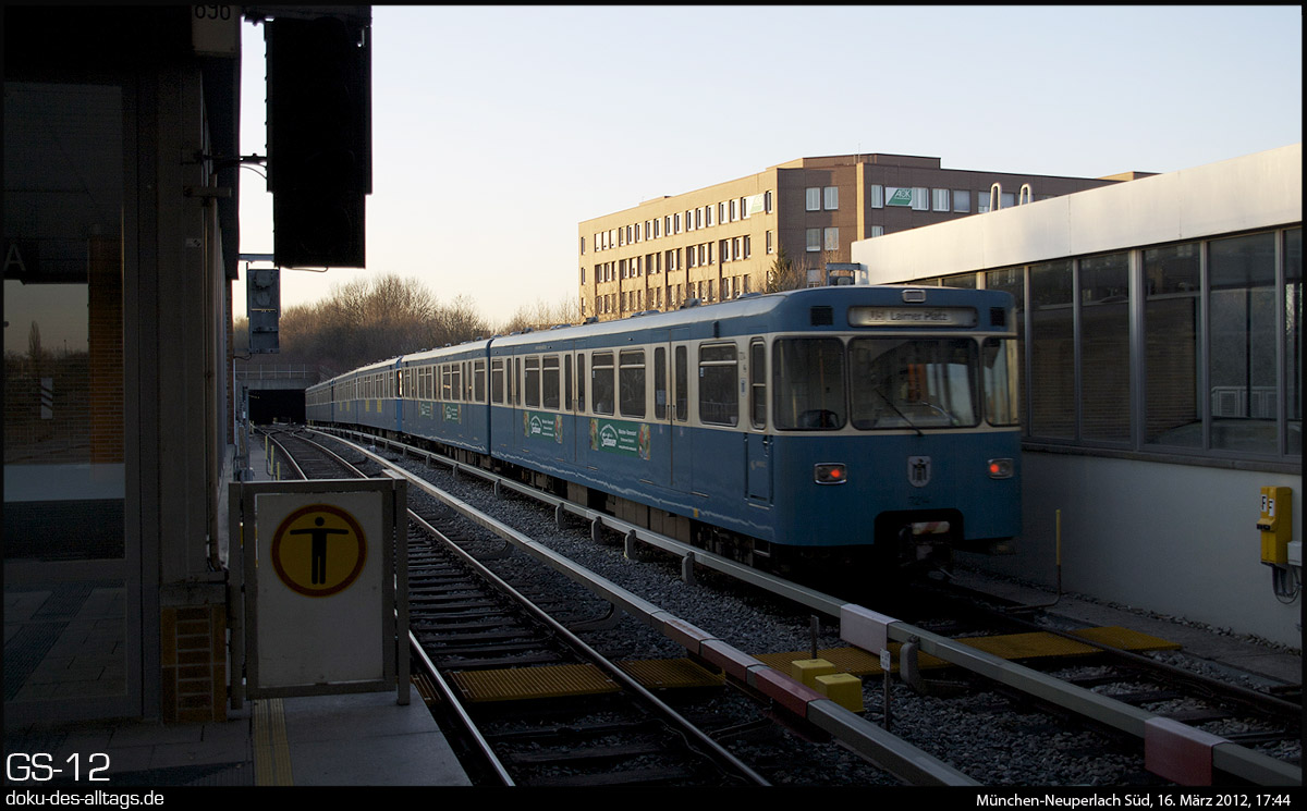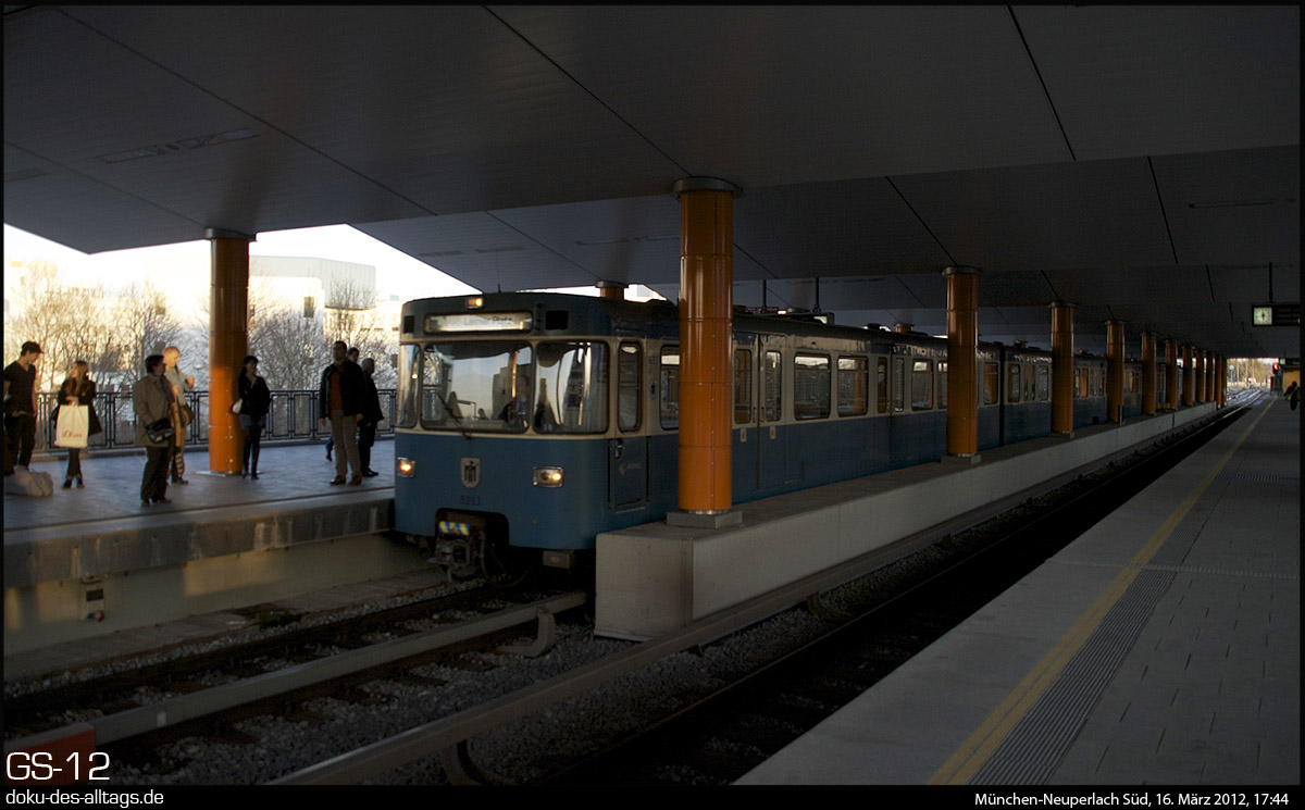 1.) Während es in Perlach noch sehr ländlich zuging, entstand östlich davon in den 1970er Jahren die Hochhaus-Trabantenstadt Neuperlach. Neu war hier auch die kombinierte S- und U-Bahnstation Neuperlach Süd. Es ist die einzige Münchner Betriebstelle, wo S-Bahn und U-Bahn am selben Bahnsteig halten.