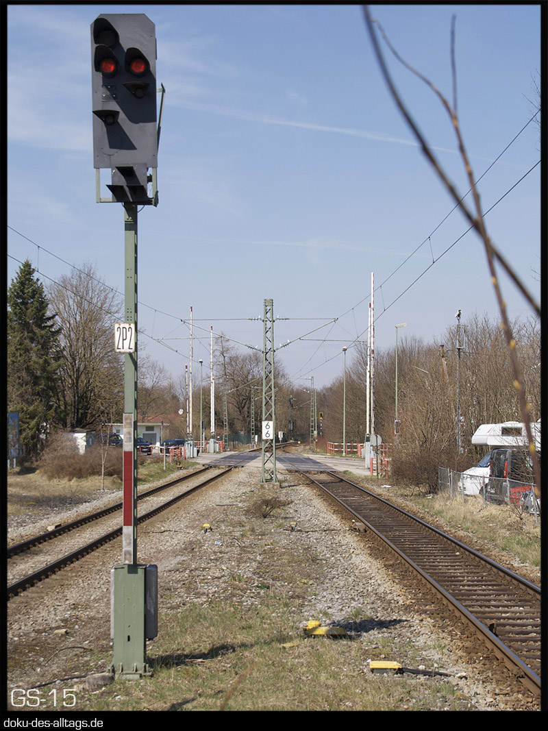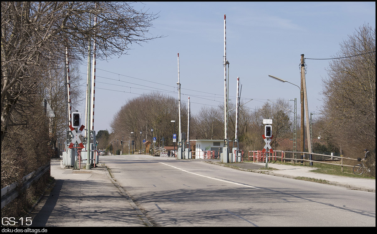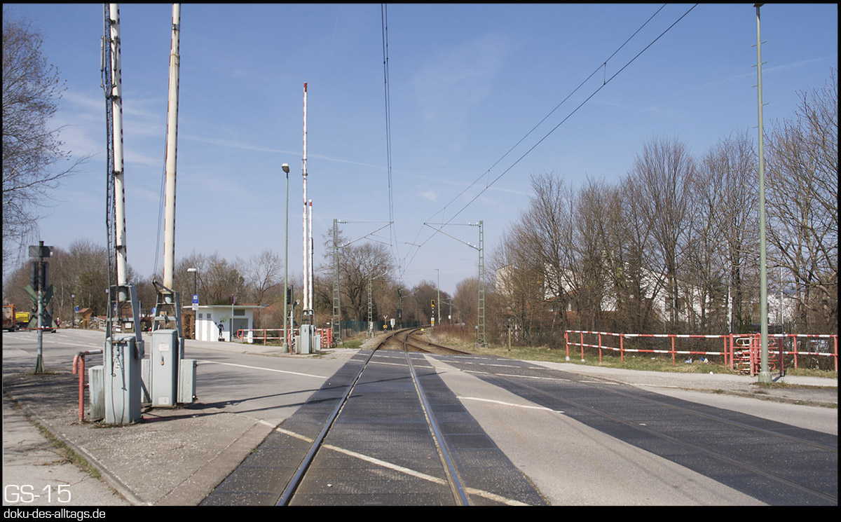 4. + 5.) Der Bahnübergang der Äußeren Hauptstraße in Neubiberg.