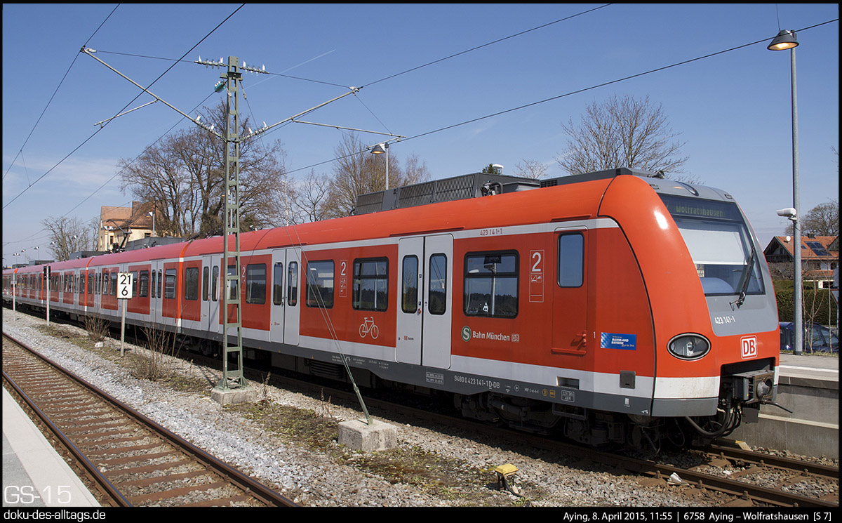 4.) Zum Vergleich: der km 21,6 am 8. April 2015. Inzwischen ist der Hausbahnsteig für einen Vollzug (zwei S-Bahngarnituren) verlängert und auch Gleis 2 hat einen Außenbahnsteig erhalten.