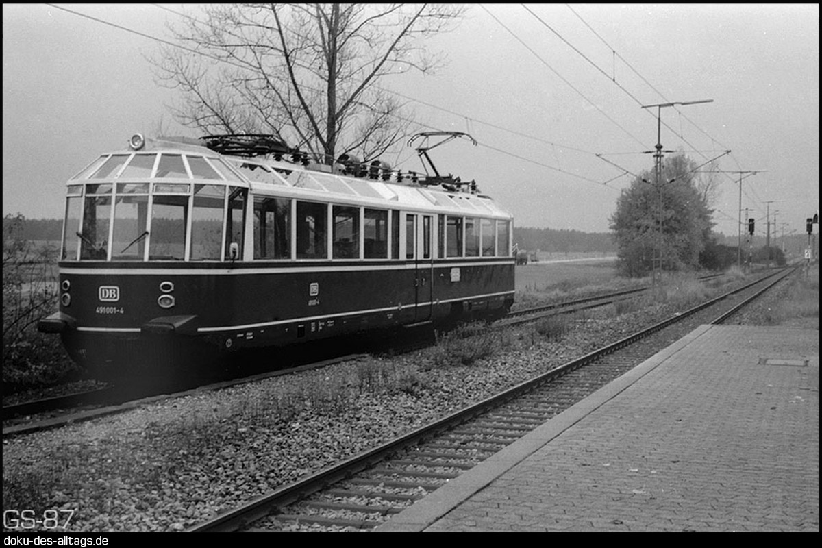 7.) Auch der Gläserne Zug kam auf seinen Fahrten rund um München regelmäßig auf diese Strecke, hier im Herbst 1987. Die Fahrt ging von München Hbf nach Olching, von dort über den Nordring nach München Ost und weiter nach Aying. Dort war Pause und Einkehr in eine Wirtschaft. Dann Weiterfahrt nach Kreuzstraße und über Holzkirchen zurück nach München Hbf.