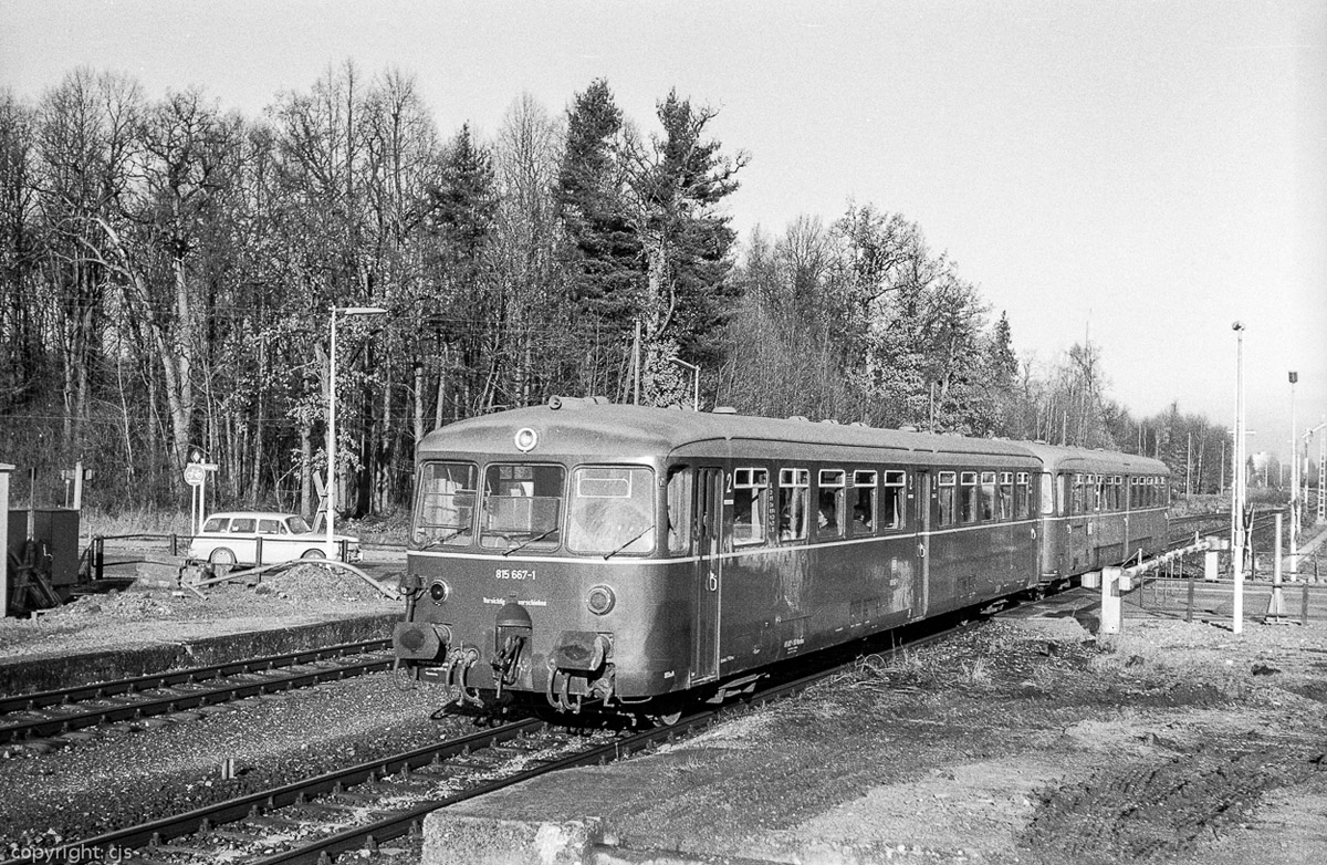 3.) So zeigte sich der Bahnhof am 6. Dezember 1970, als Claus-Jürgen Schulze vor Ort war. 515 020 mit 815 667 fährt als Nt 4215 von Deisenhofen nach München Ost.